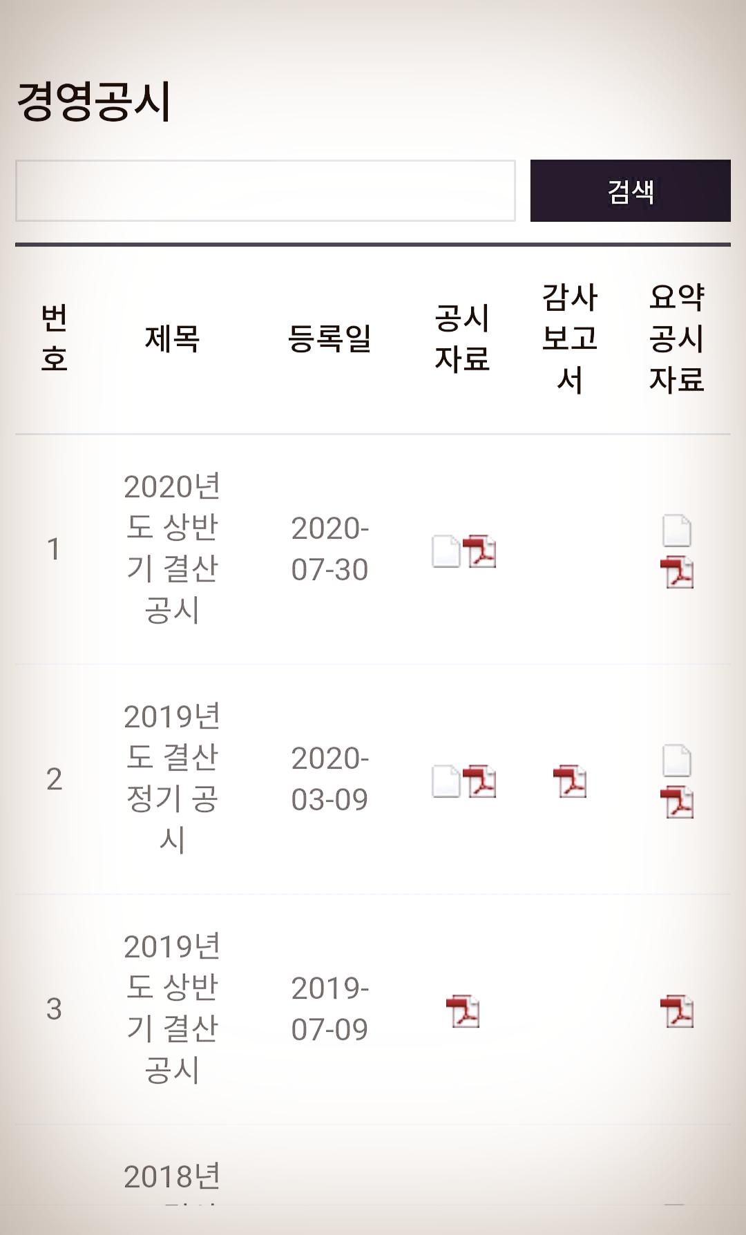 경영공시 요약공시자료로 들어갑니다.