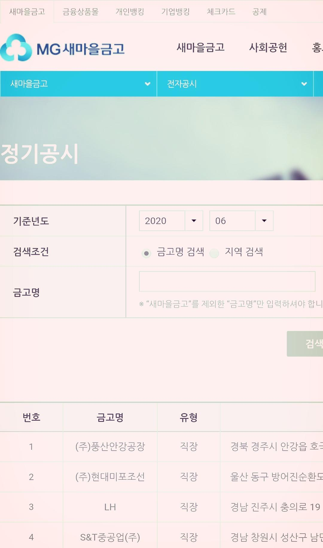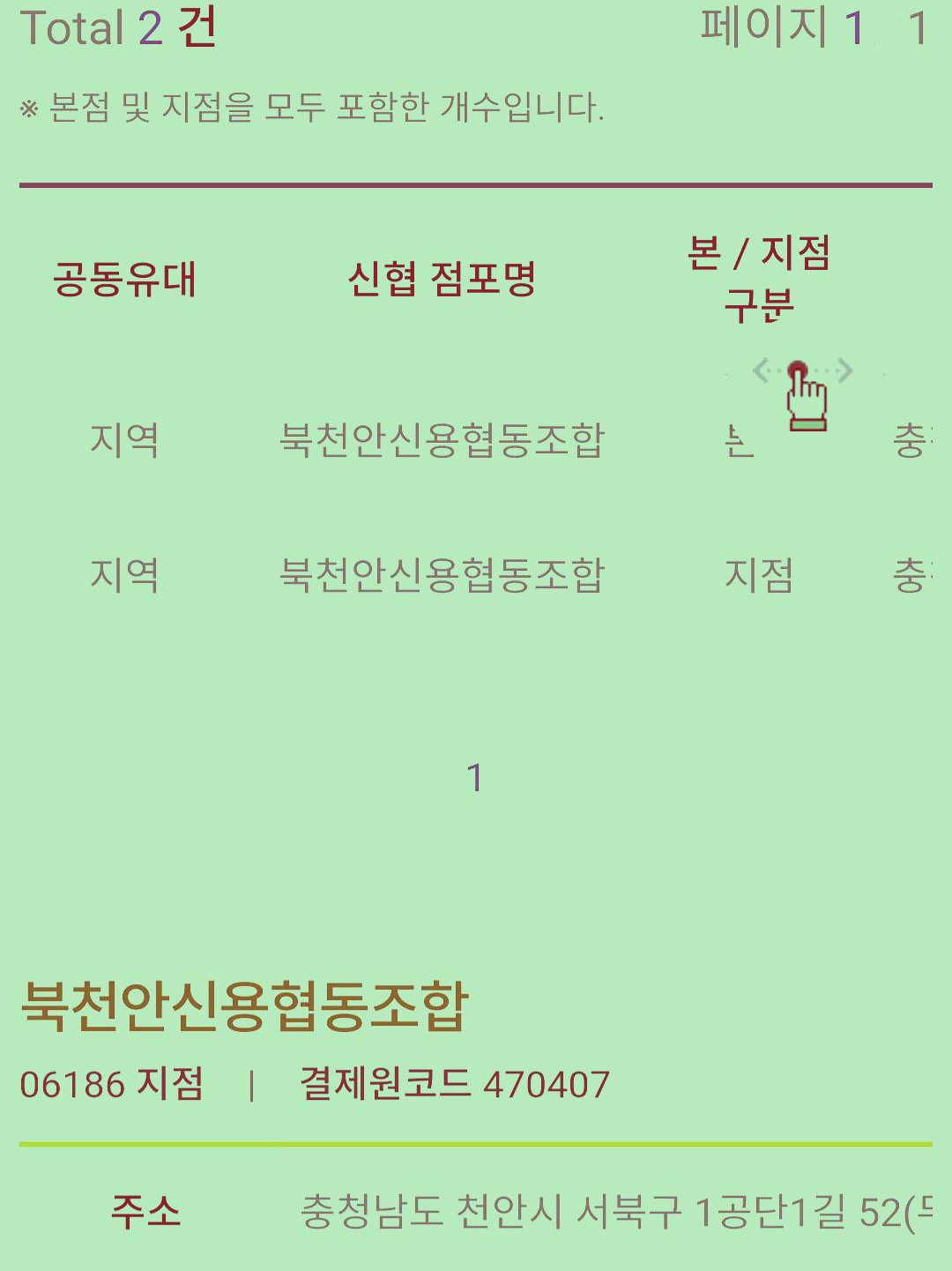 금고명을 검색합니다. 해당 주소를 확인하고 터치합니다.