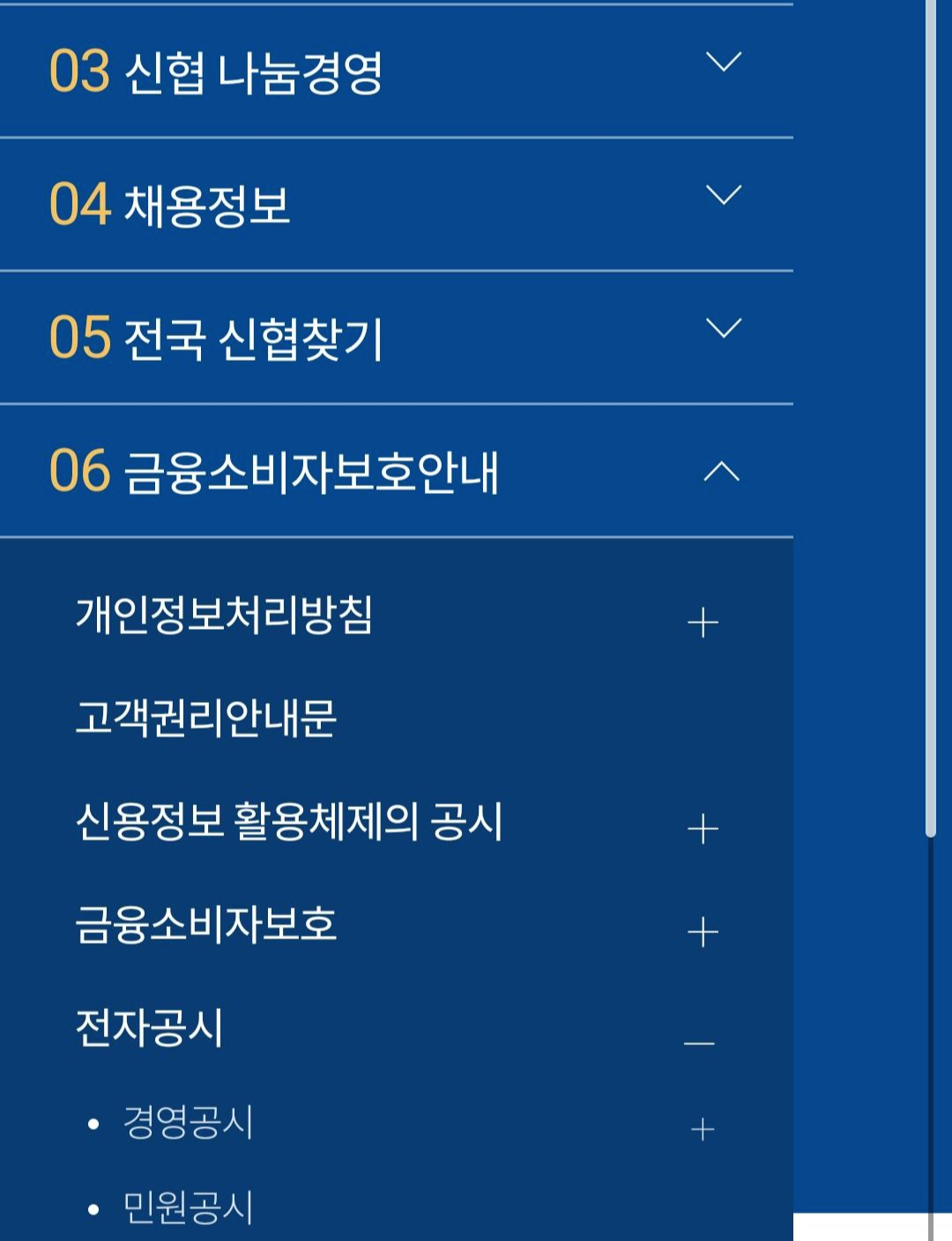금융소비자보호 안내를 터치합니다.