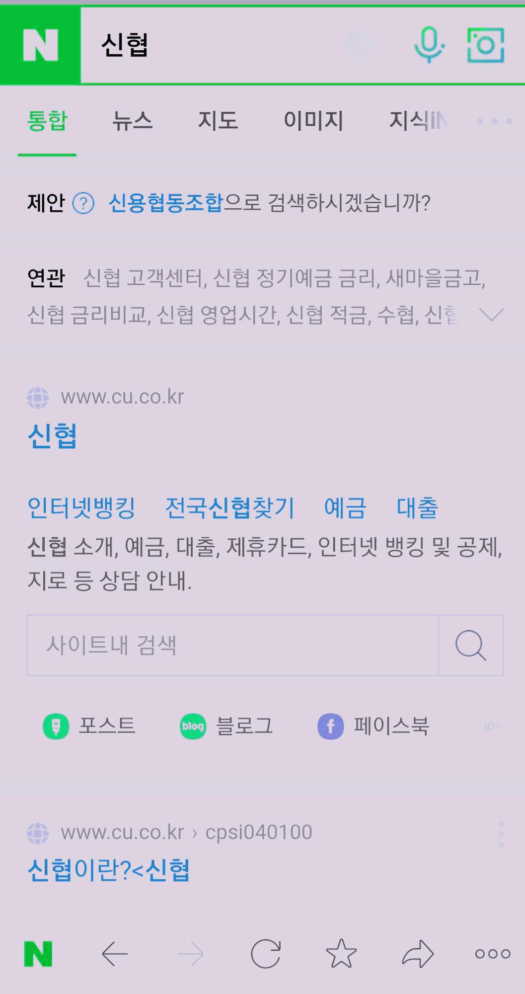 핸드폰 네이버 검색창에 신협을 검색합니다.