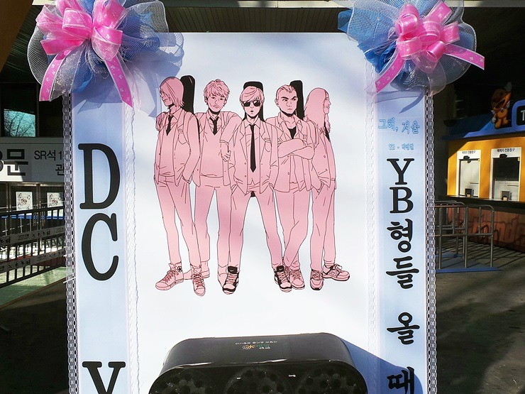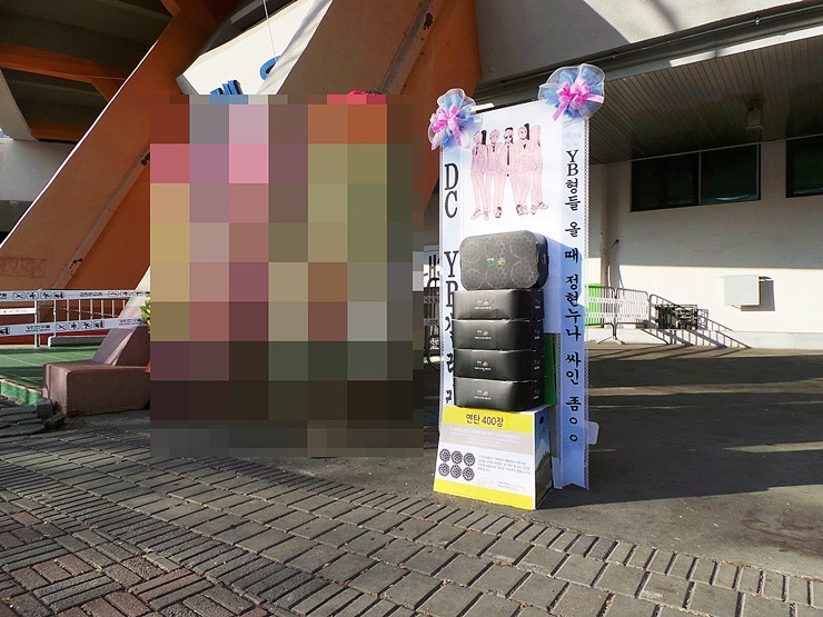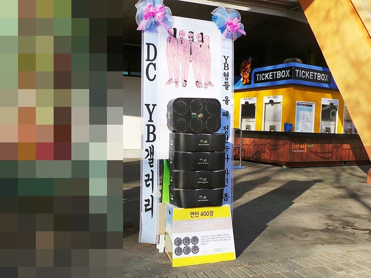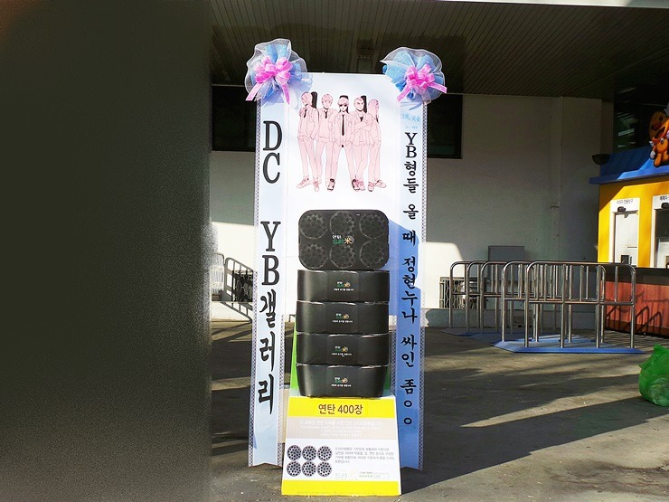 응원 연탄드리미화환에는 'YB형들 올 때 정현누나 싸인좀 OO DC YB갤러리'란 응원 메세지와 함께 연탄 400