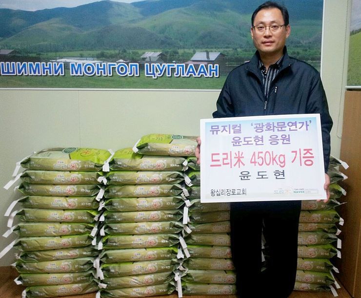 윤도현의 팬들은 지난 2011년 3월 24일 뮤지컬 '광화문 연가'에 윤도현 응원 드리미 쌀화환 1.45톤, 지난 해