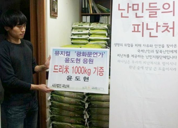 케이스에 드리미 쌀화환 40kg을 보내와 윤도현을 응원했었다. 윤도현은 지난 해 4월 사단법인 피난처와 교회