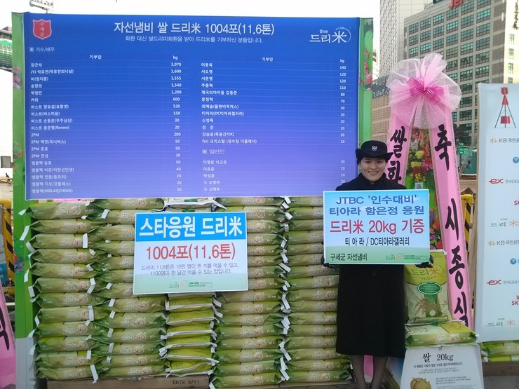 ristmas T-ARA Family Concert'에 드리미 쌀화환 2.74톤과 연탄드리미화환 1천760장, 사료드리미화환 60kg 등 지금까지 모두 열