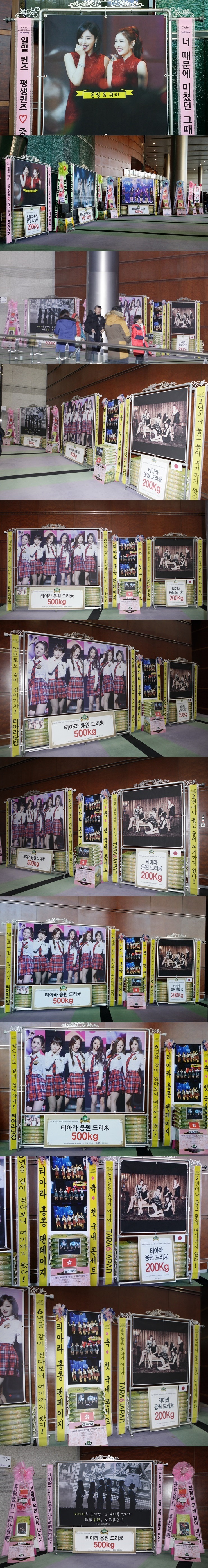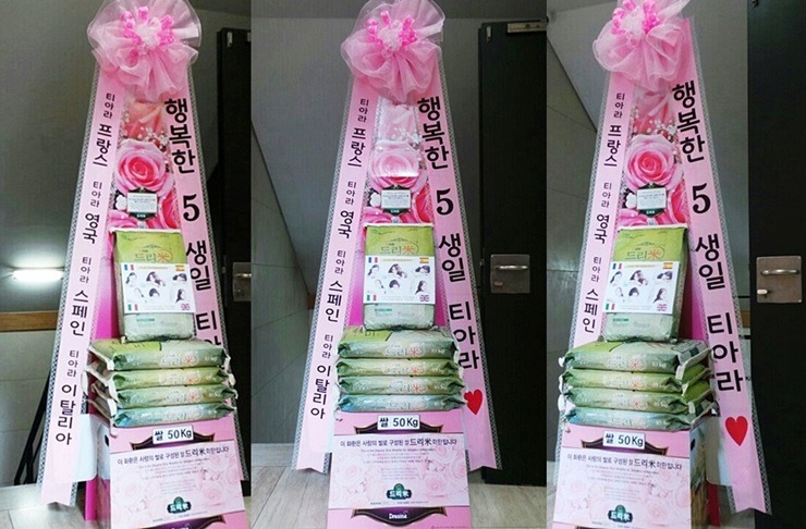 일본 중국 태국 팬들이 참여해 드리미 쌀화환 660kg과 알부자드리미화환 200개, 사료드리미화환 40kg을 보내와 티아라를 응