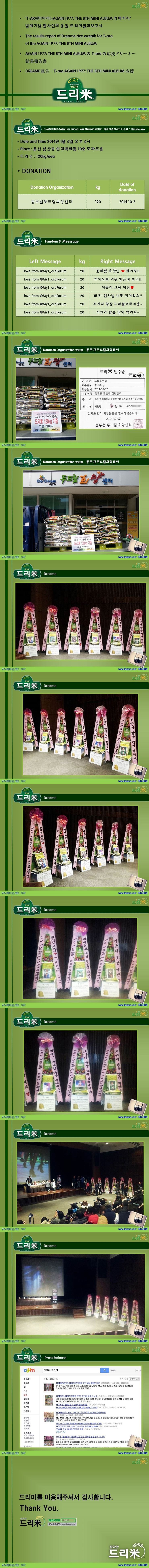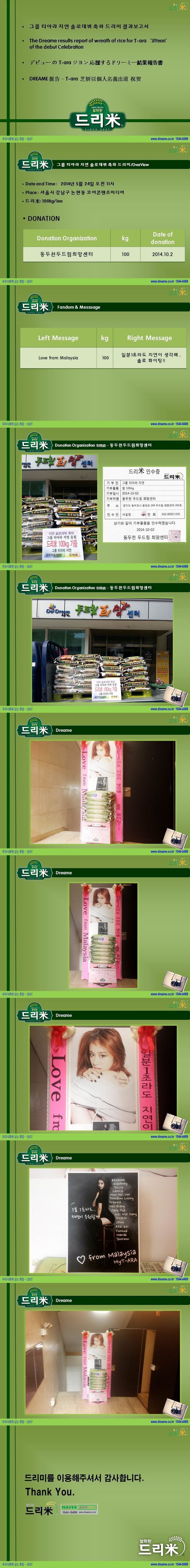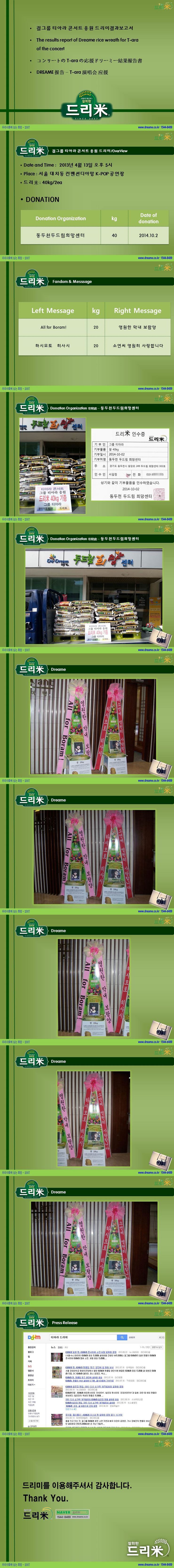 * 2014년 5월 24일 그룹 티아라(T-ara 보람, 지연, 효민, 은정, 큐리, 소연) 멤버 지연 솔로 데뷔 축하 드리미 쌀화환 기부완료 드리미결과보고서