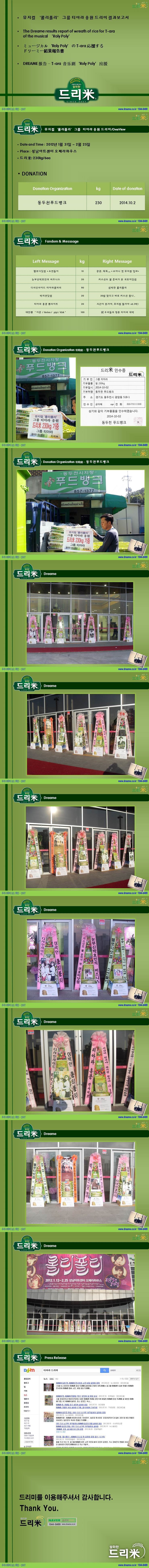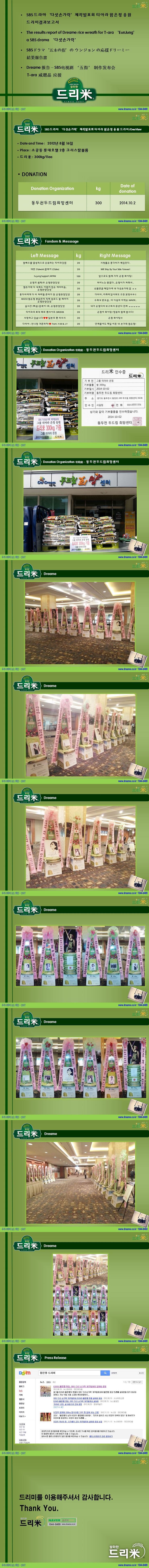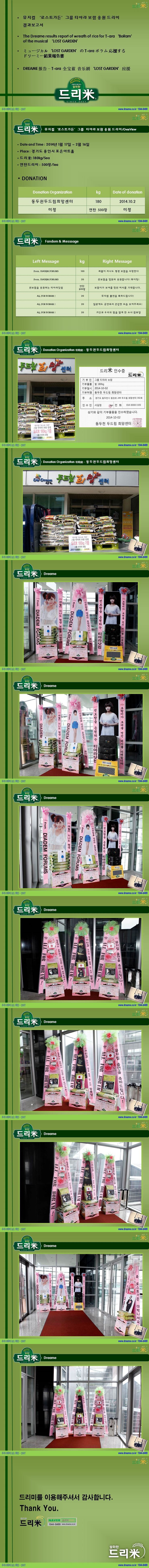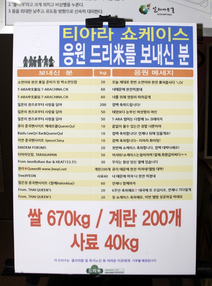 * 2014년 1월 6일 그룹 티아라 (T-ara) 팬사인회 축하 드리미 쌀화환 기부완료 드리미결과보고서
