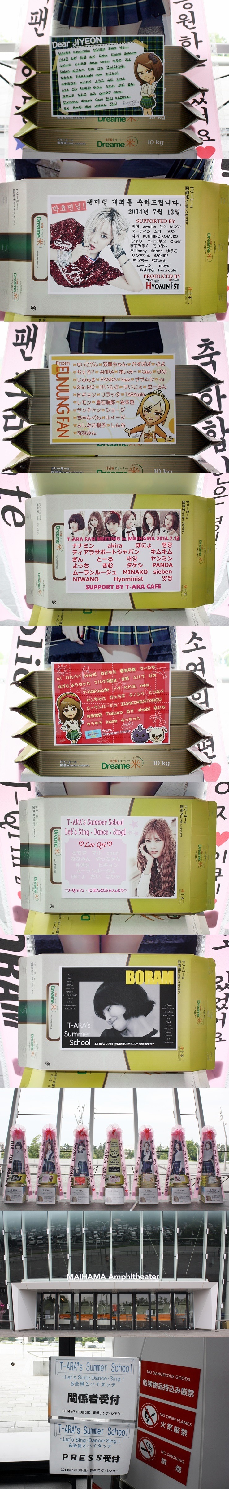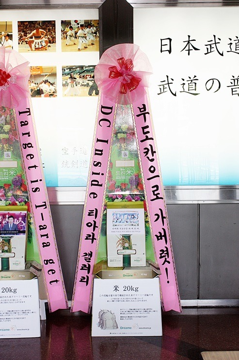 * 2014년 7월 13일 그룹 티아라(T-ara 보람, 지연, 효민, 은정, 큐리, 소연) 일본 팬미팅 'T-ARA's Summer School-Let’s Sing・Dance・Sing!' 응원 드리미 쌀화환