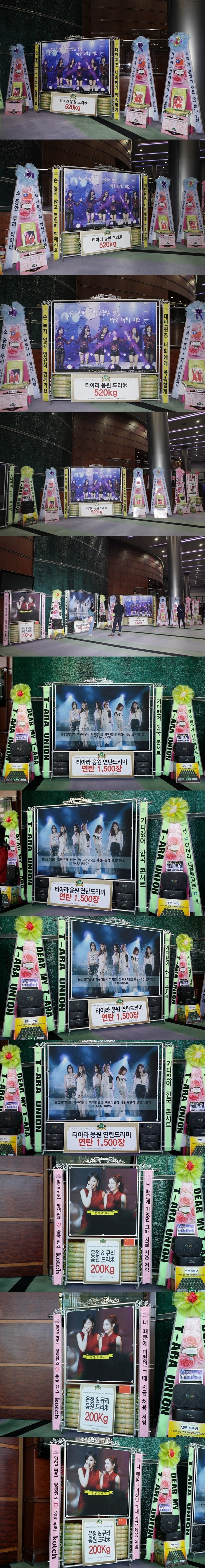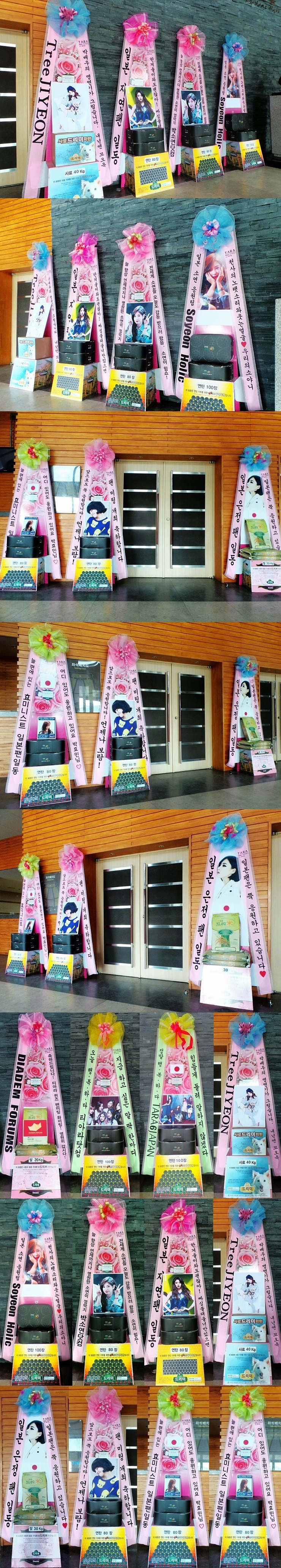 탄드리미화환 500장, 5월 24일 지연 솔로데뷔 축하 드리미 쌀화환 100kg, 7월 13일 티아라 일본 팬미팅 'T-ARA's Summer Sc-
