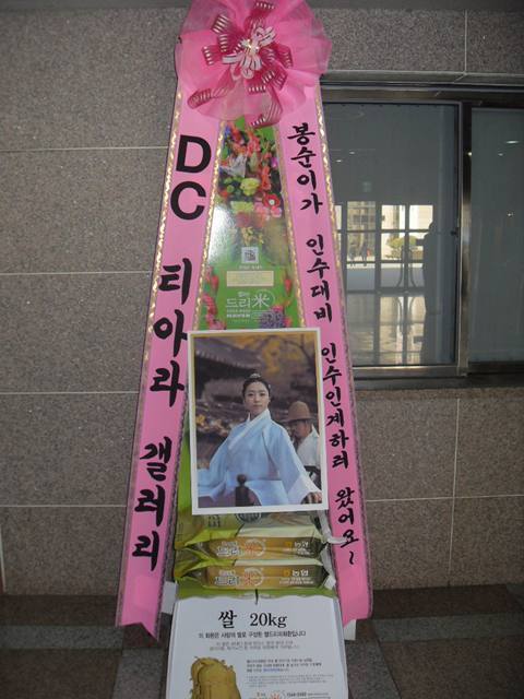 페키지 발매기념 팬사인회 응원 드리미 쌀화환 120kg, 2월 2일 뮤지컬 '로스트가든' 티아라 보람 응원 드리미 쌀화환 120kg과 연
