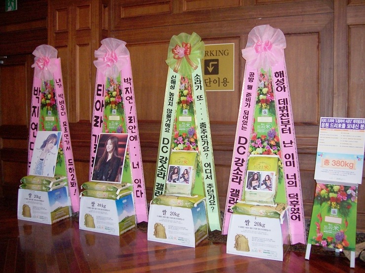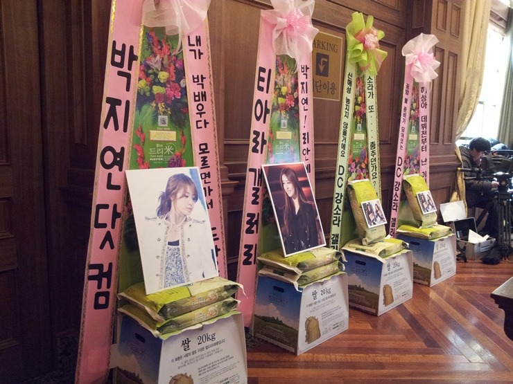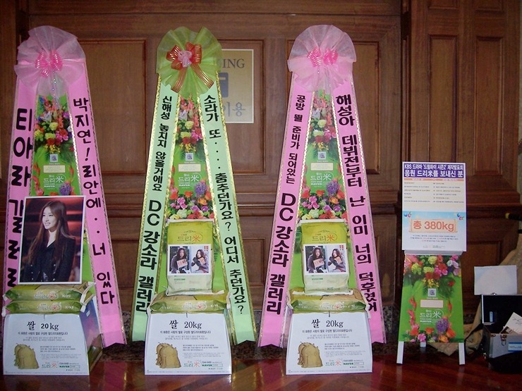 BS '드림하이2' 제작발표회 지연 응원 드리미 쌀화환, 7월 14일 티아라 팬클럽 창단식 티아라 응원 드리미 쌀화환과 소연 효민