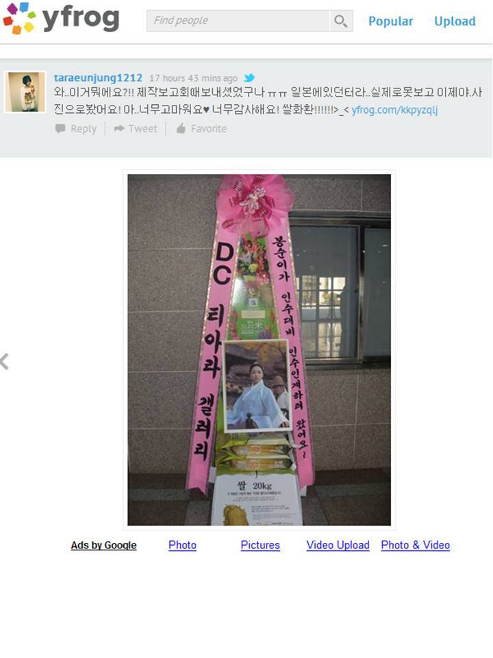 * 2011년 11월 24일 JTBC '인수대비' 제작발표회 티아라 은정 응원 드리미 쌀화환 기부완료