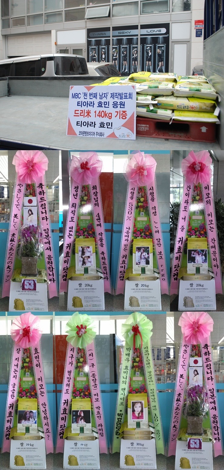 * 2012년 8월 14일 MBC '천 번째 남자' 제작발표회 티아라 효민 응원 드리미 쌀화환