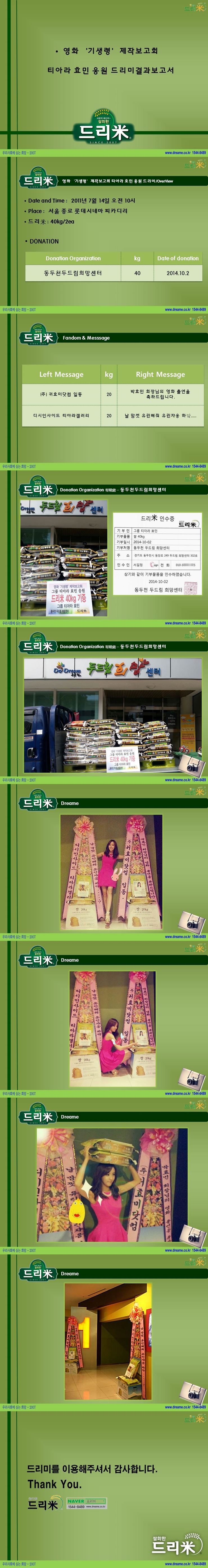 * 2011년 7월 14일 영화 '기생령' 제작보고회 티아라 효민 응원 드리미 쌀화환 기부완료 드리미결과보고서
