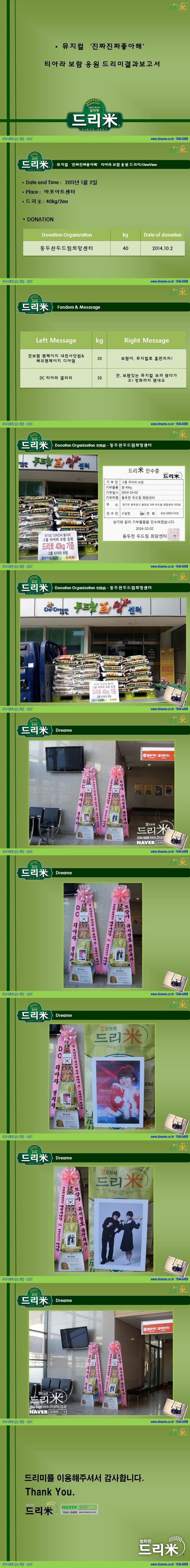 * 2011년 1월 2일 뮤지컬 '진짜 진짜 좋아해' 티아라 보람 응원 드리미 쌀화환 기부완효 드리미결과보고서