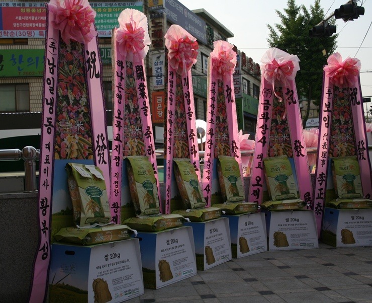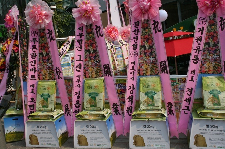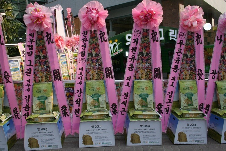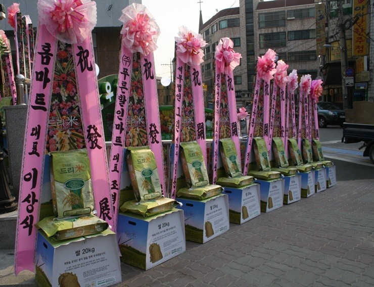 18일 오전 서울 양천구 신월 7동 우성상가에 우성그린마트가 오픈 개업식을 갖고 본격 영업에 들어갔다. 우성그린마트는 대형할인마트와의 가격경쟁력을 확보하고 저렴한 가격으로 승부할 예정이다. 특히 농수축산물의 경우 신선하고 저렴한 고품질의 상품을 지속적으로 선보일 계획이다. 우성그린마트는 개업식 초청장에 "축하화환은 정중히 사양합니다. 화환 대신 쌀드리미화환을 보내주시면 소외받는 이웃을 위해 쓰겠습니다"라는 내용의 쌀드리미 안내문구를 넣었고, 이날 개업식에는 축하화환 대신 쌀드리미화환이 답지했다. 우성그린마트는 드리미화환의 쌀을 관내 어려운 이웃에게 나눌 예정이다.