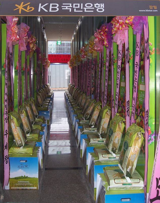 KB국민은행 인천한화지점이 6월 10일 개점식을 갖고 영업에 들어갔다. 국민은행 인천한화지점은 6월 10일 인천시 남동구 논현동 나로프라자 1층에서 내외빈 100여 명이 참석한 가운데 개점식을 가졌다. 국민은행 인천한화지점은 이날 개점식에서 개점축하 화분과 화환 대신 사랑의 쌀로 구성된 쌀드리미화환을 받아 어려운 이웃을 돕기로 하여 참석자들로부터 뜻 깊은 개점식이라는 평가를 받았다. 인천한화지점은 개점식 초청장에 "축하화환은 정중히 사양합니다. 화환 대신 쌀드리미화환으로 보내주시면 좋은 날 소외받는 어려운 이웃에게 사랑을 나누겠습니다"라는 내용의 드리미 안내문구와 안내장을 넣어 보냈었다. 한편 지난 5월 인천 청라지구에 문을 연 KB국민은행 인천청라지점도 개점식에서 화환 대신 받은 개점축하 쌀드리미화환의 사랑의 쌀 1톤을 인천서구청에 기부한 바 있다.