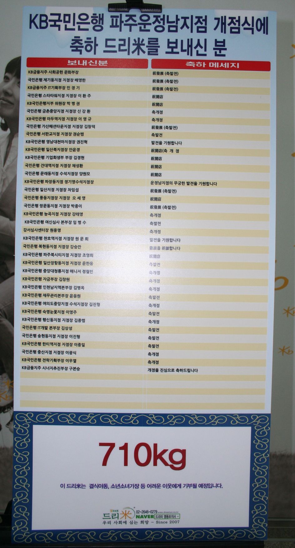 KB국민은행 운정남지점 오픈 개점식 축하 쌀드리미화환 진행 : 쌀화환 드리미 www.dreame.co.kr 1544-8489