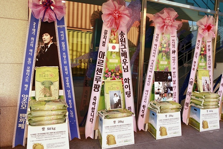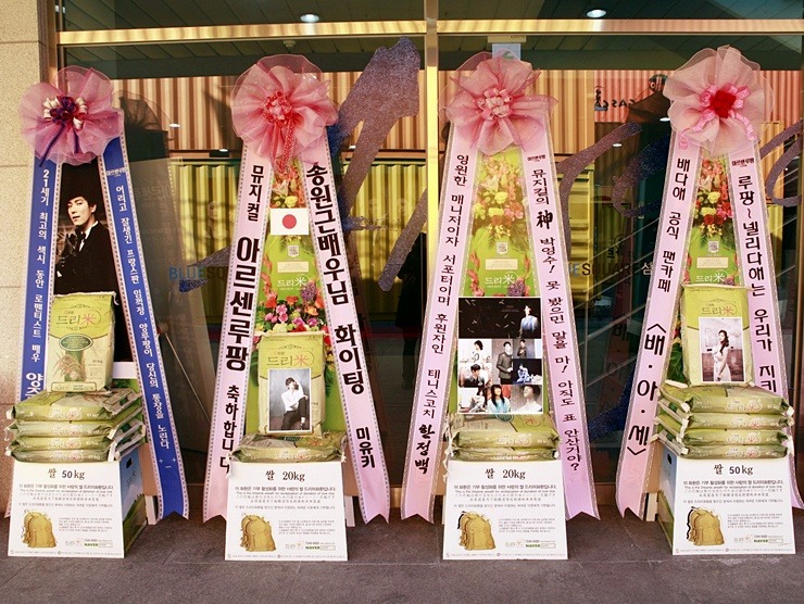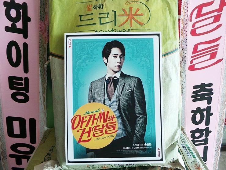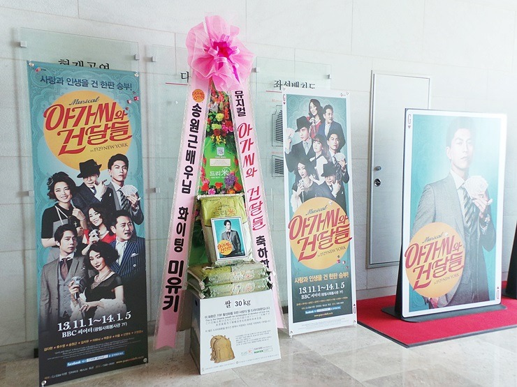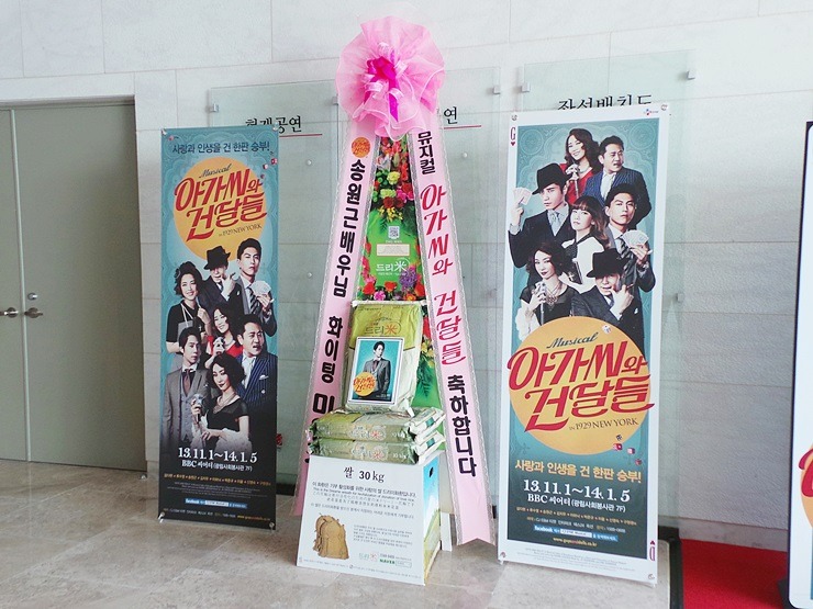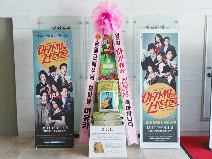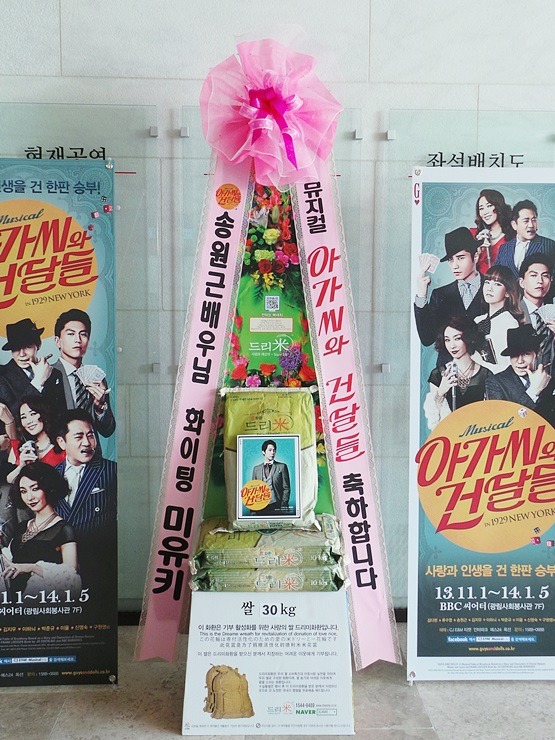 * 2013년 11월 1일 뮤지컬 '아가씨와 건달들' 배우 송원근 응원 쌀드리미화환 - 쌀화환 드리미
