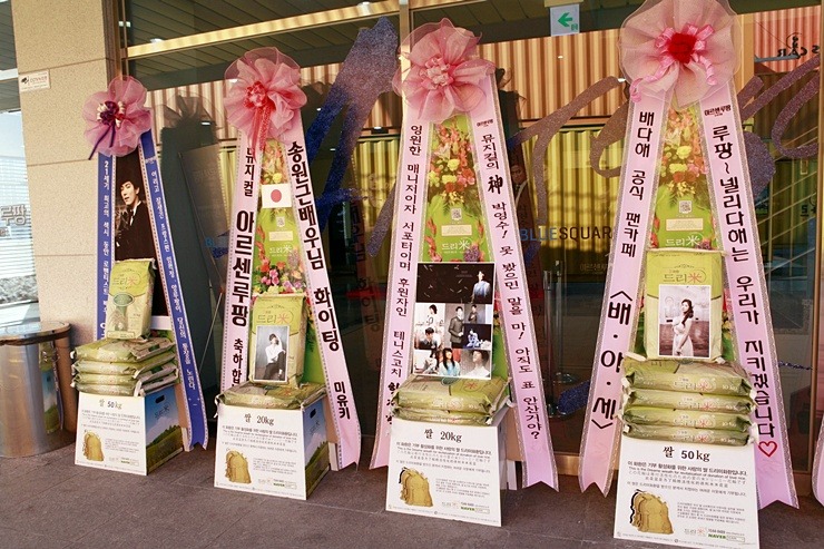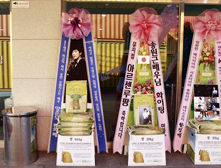 배우 송원근의 팬들은 지난 해 4월 뮤지컬 '파리의 연인' 공연에 송원은 응원 드리미 쌀화환을 처음 보내온 것을 시작