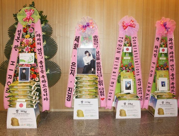 뮤지컬 배우 송원근의 일본 팬이 뮤지컬 '아가씨와 건달들'에 출연하는 송원근에게 드리미 쌀화환을 보내와 뮤지컬의