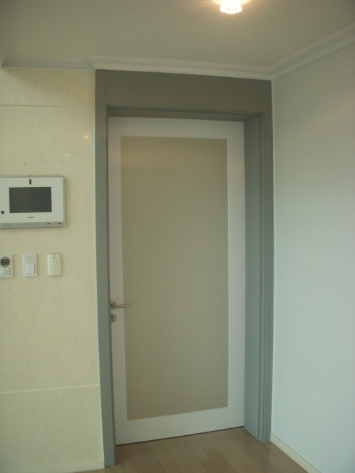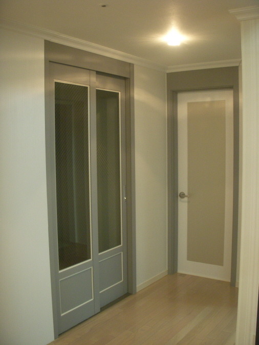 중문이 자리하고 기존 문틀및 문짝도 모두 같은 계열의 색상패턴으로 리폼하였습니다