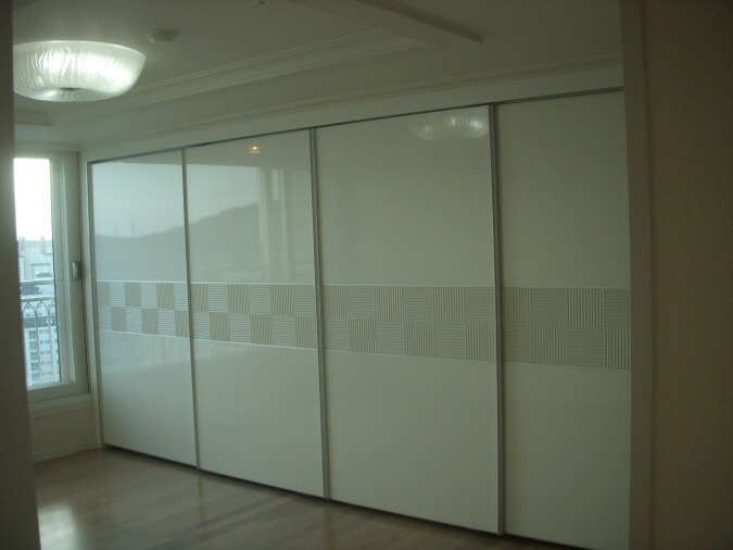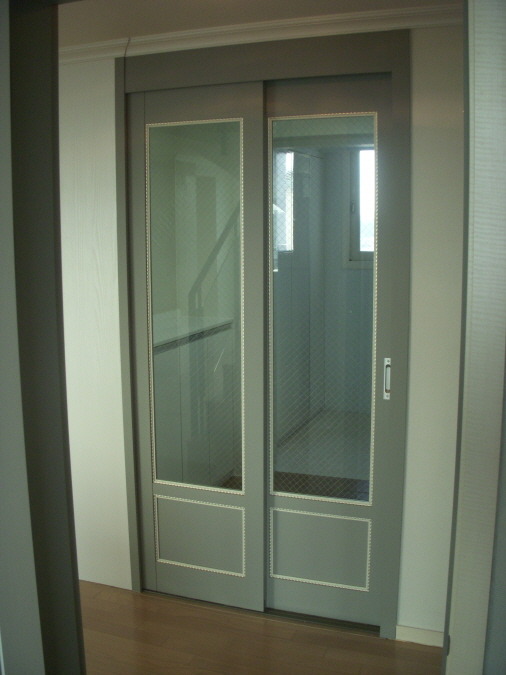 2 연동 포켓중문 설치 하였습니다 . 망입유리로 심플함을 살리고 ,