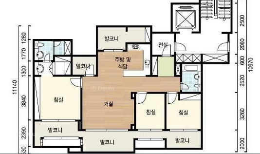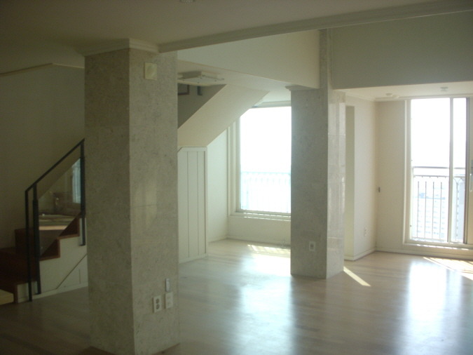 공사전 거실 쇼파월 부분입니다 . 방 1개가 계단으로 인해 없어진 형태라