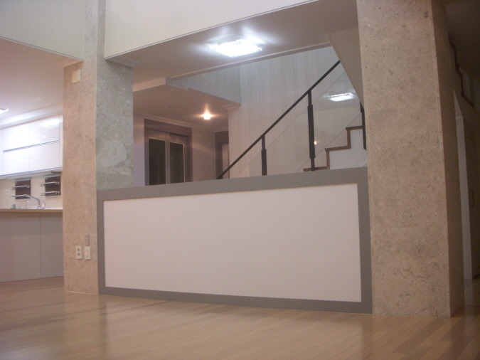 파티션을 설치 해 쇼파월 기능과 계단실을 나눔으로 별도의 공간으로