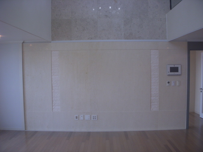 공사전 아트월 생각 나시나요 . 거실 상층부와의 매치가 되지않아 , 위아래가 따로 놀았던 형태 !