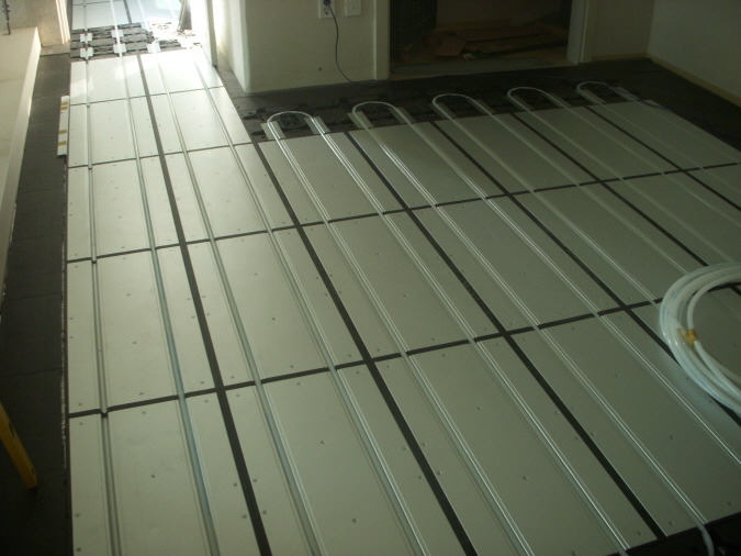 건식난방패널 설치 중입니다 . 기존 시멘트 습식방법보다 두께도 훨씬 얇고 , 공기도 짧고 ,