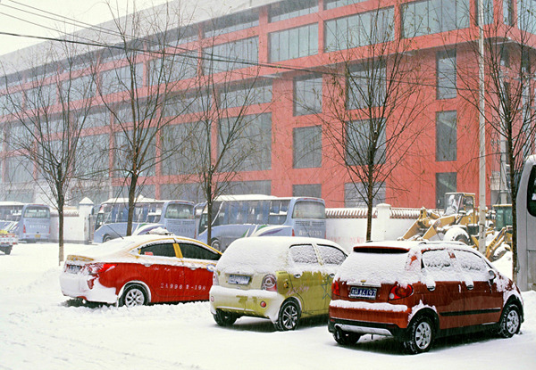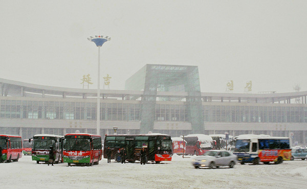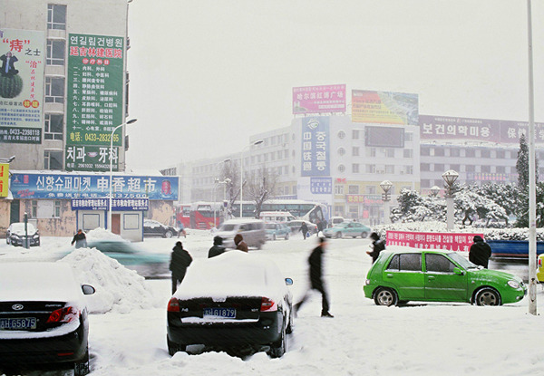 눈 오는 날 연길역 인근 풍경.