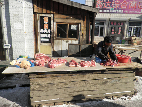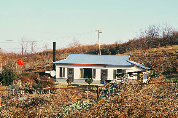 권하촌 의 한 민가. 나는 이곳에서 하룻밤 잤다. 창문에다 비닐을 쳐서 혹한에 대비하고 있다.