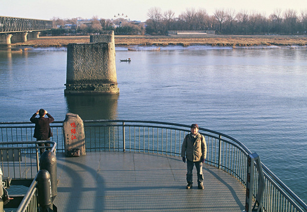 단동역에서 도보로 5분 거리에 있는 압록강 다리. 강 건너편은 북한 신의주이다.