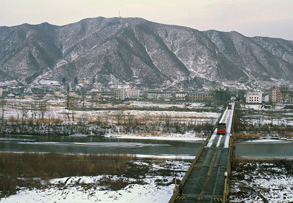 도문역 도문대교. 북한에서 물자를 싣고 돌아오는 중국 화물차가 보인다.
