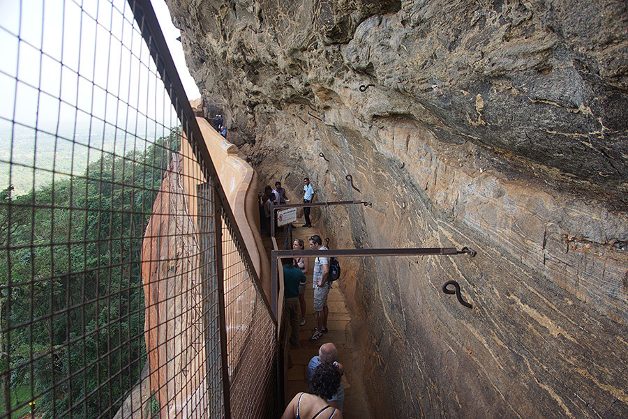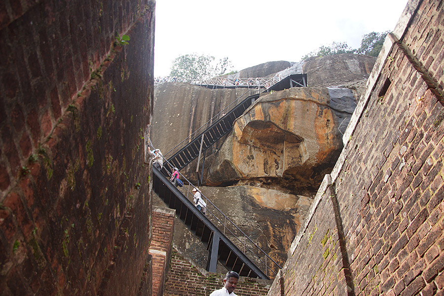 5세기 말, 아버지를 산 채로 묻어버리고 왕위를 찬탈한 피해망상증의 왕이 있었다. 그는 형제까지 죽이려 했지만 실패하자 앞으로 있을지 모르는 형제들의 반역에 대비해 시기리야에 몸을 숨겼다. 그는 자신의 위세를 드높이고자 새로운 바위 성의 아랫부분을 깎아 사자 모양으로 만들었다. 이 성을 찾는 사람들은 백수의 왕인 사자의 입으로 들어가는 것이다. 고대 도시는 지금은 폐허가 되었고, 복잡하게 연결된 좁은 계단과 거대한 갤러리들과 1,000년도 더 전에 그려졌다고 하는 벽화만이 남아 있다.