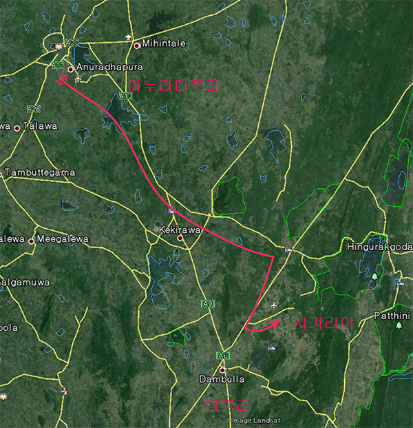 <시기리야 가는길: 구글 지도 사용>