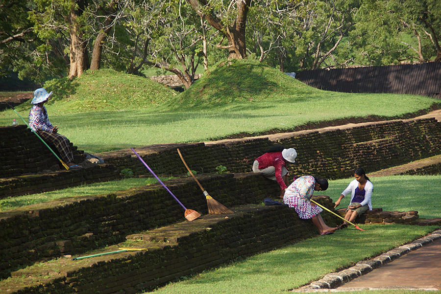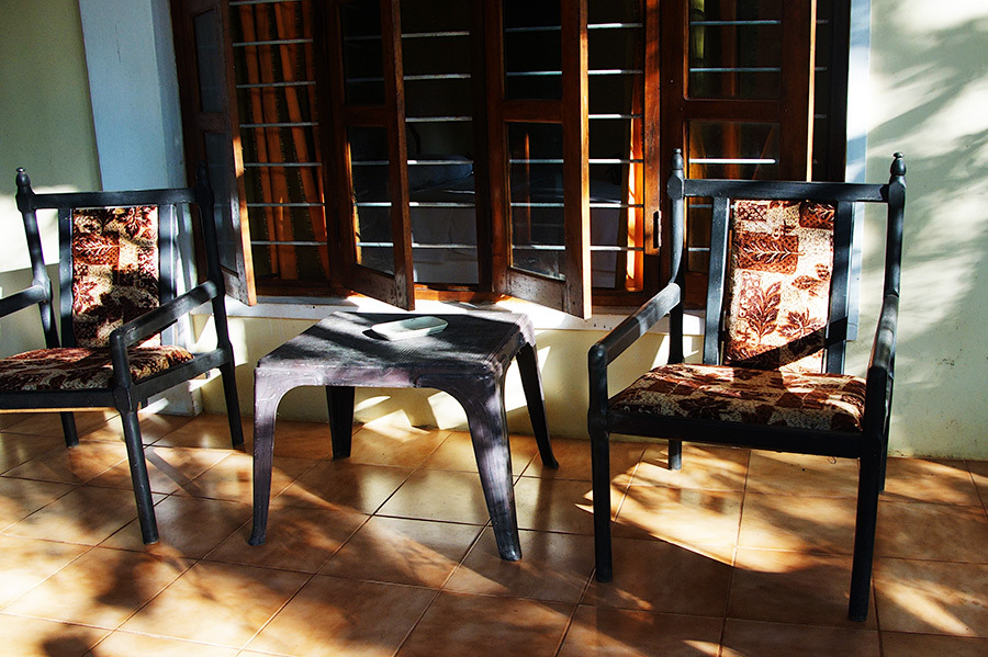 시기리야에 도착하니 해가 저물기 시작했다. 나무 숲 사이로 들어온 햇살이 호텔 로비에 놓인 의자에 비쳐 흥미로운 디자인을 만들고 있었다. 물끄러미 그림자를 바라보다가 나에게 배당된 1층 방으로 들어갔다. 전날 비가 와서 그런지 습기가 많아 침대며 수건이 축축했다. 얼마나 습기가 많은지 이날 저녁에 빨래해서 널어 놓은 옷이, 다음날 보니 전날보다 오히려 더 축축해져 있었다. |