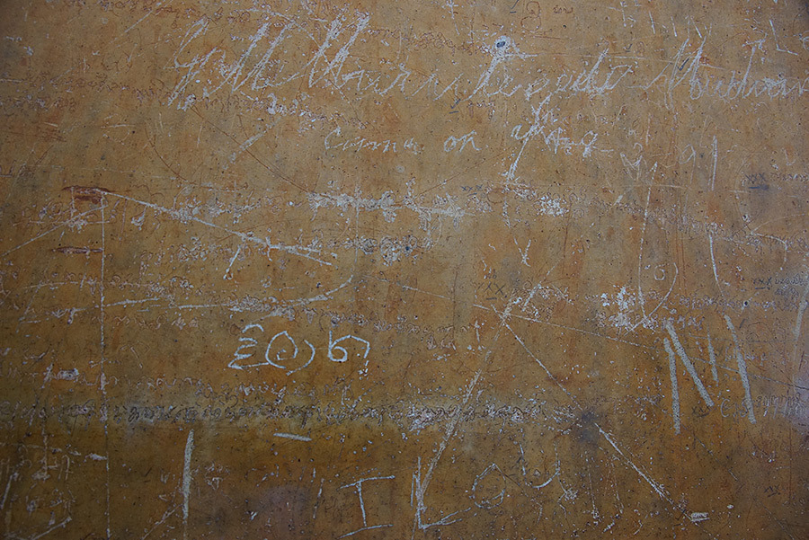 여기서 다시 조금 내려오면, 길고 긴 황색의 거울벽이 나온다. 벽이 맨들맨들해서 마치 얼굴이 보인다는 뜻일 것이다. 제작할 당시는 어떨지 모르지만 세월이 지나니 거울이라고는 할 수는 없는 듯 했다. 옛날 시골에서 살 때 장판을 하고 그 위에 니스칠을 한 듯한 느낌이 드는 벽이었다. 누군가가 그곳에 낙서를 한 것이 많이 눈에 띄었다. Lonely Planet에 따르면 그 낙서 중에는 이런 것도 있다고 한다. "가슴에 황금 목걸이를 걸친 여인들이 나를 오라고 손짓하네. 눈부시게 빛나는 여인들을 바라보니, 천국도 이보다는 못 하리라."