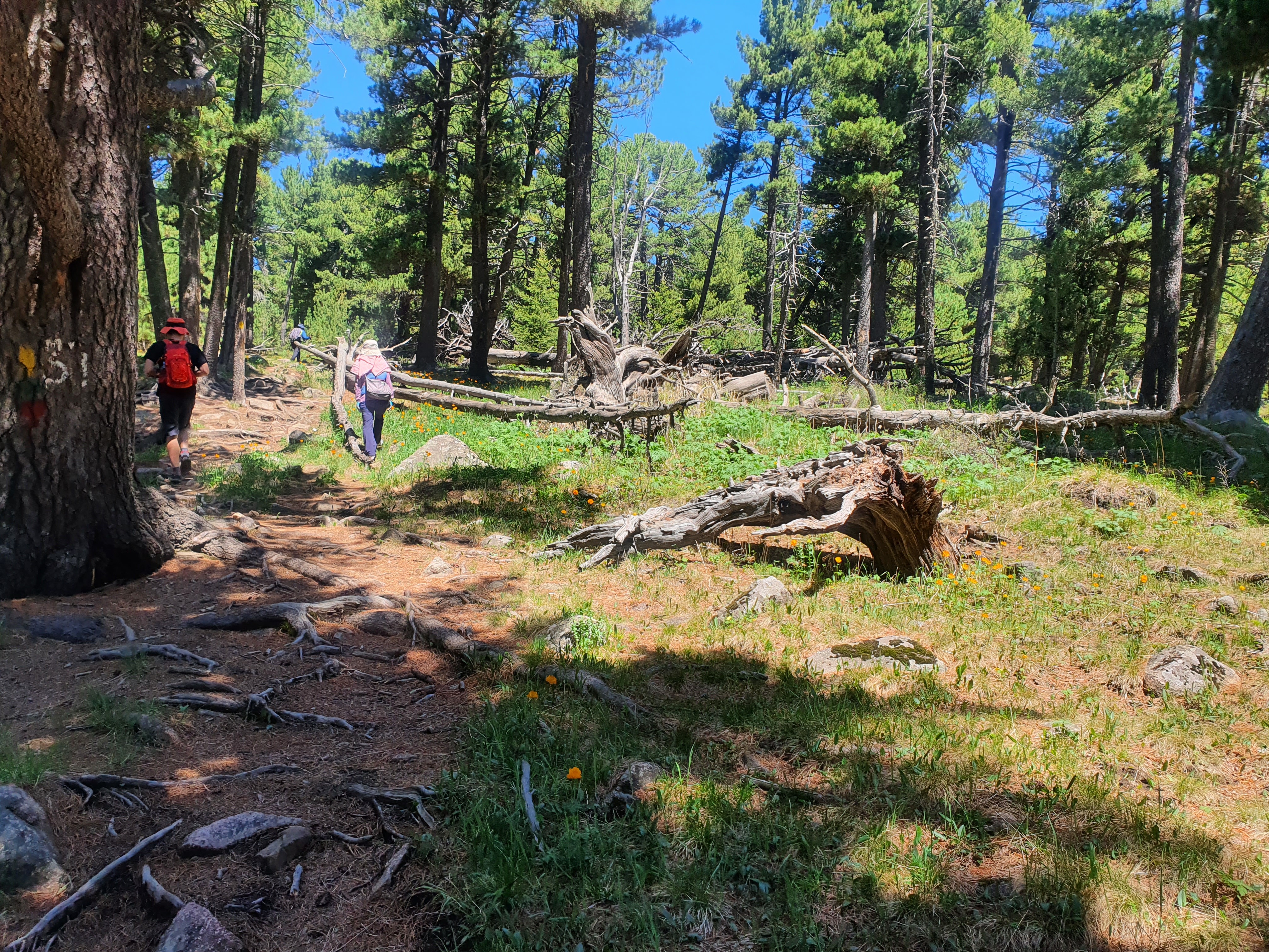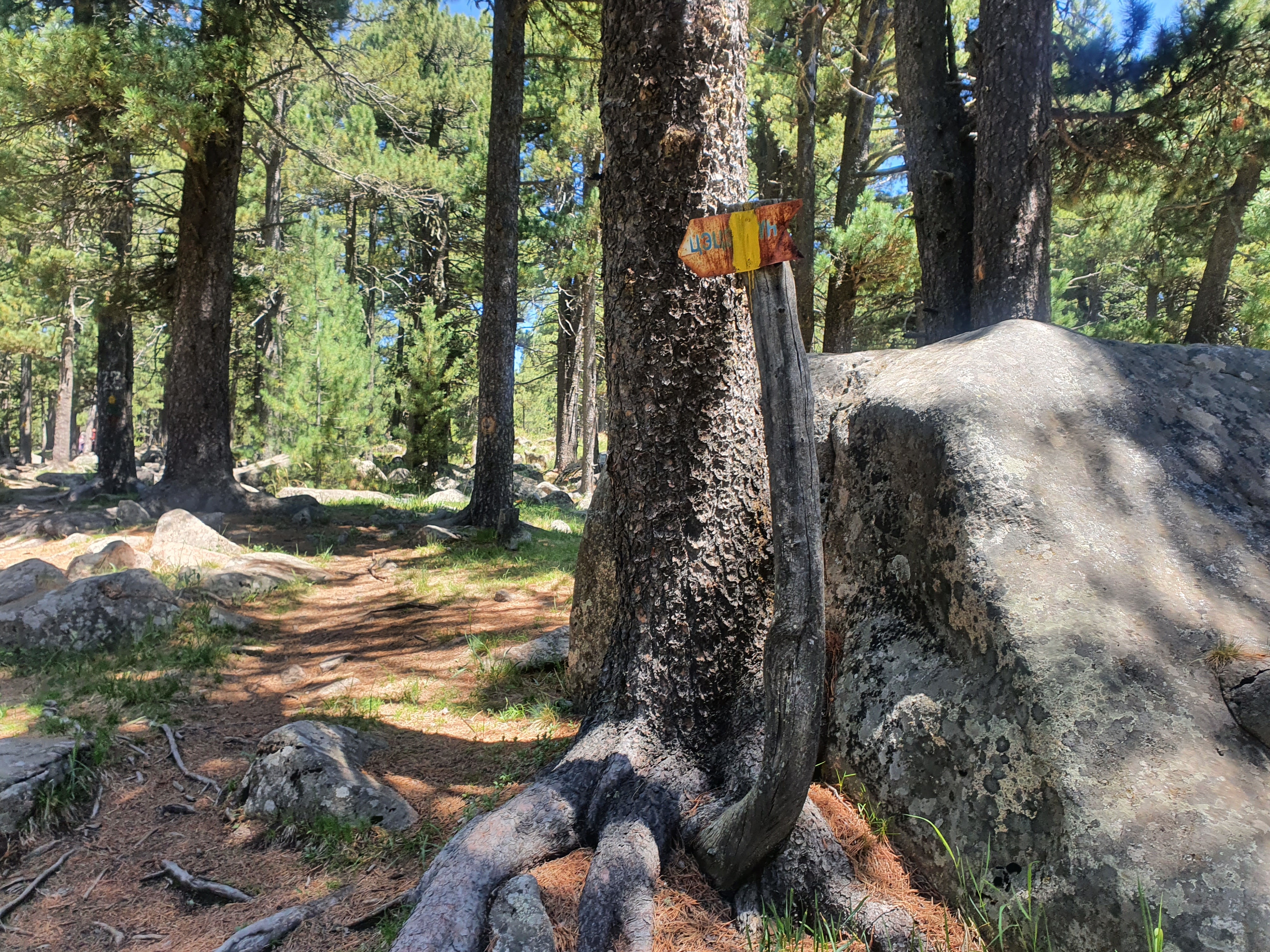 등산로 입구는 해발 1,700m가 넘는다. 우리는 10시 30분부터 산행을 시작했다. 등산로 표시는 나무에 노란 페인트로 표시되어 있고 중간 중간에 빗 바랜 방향표시판도 설치되어 있어 초보자라도 등정하는데 무리가 없다.