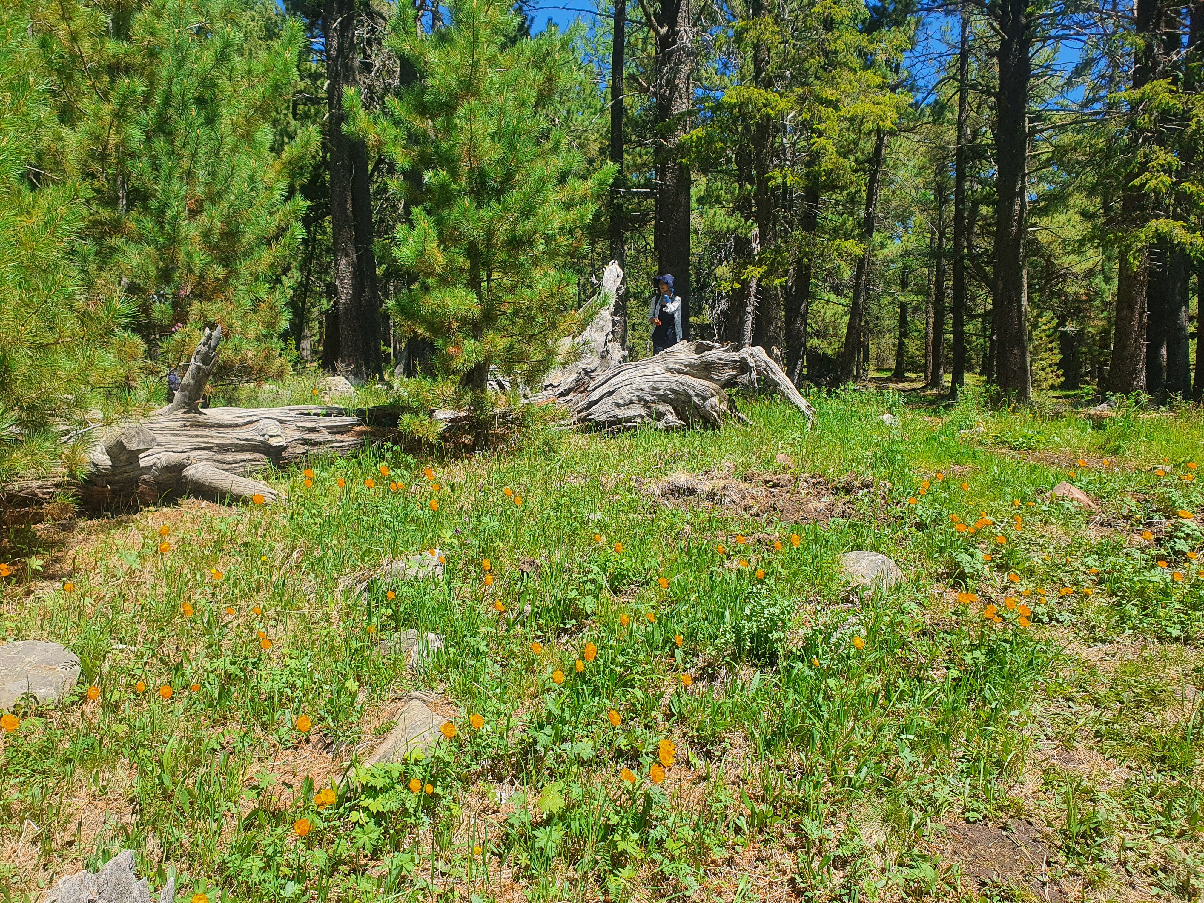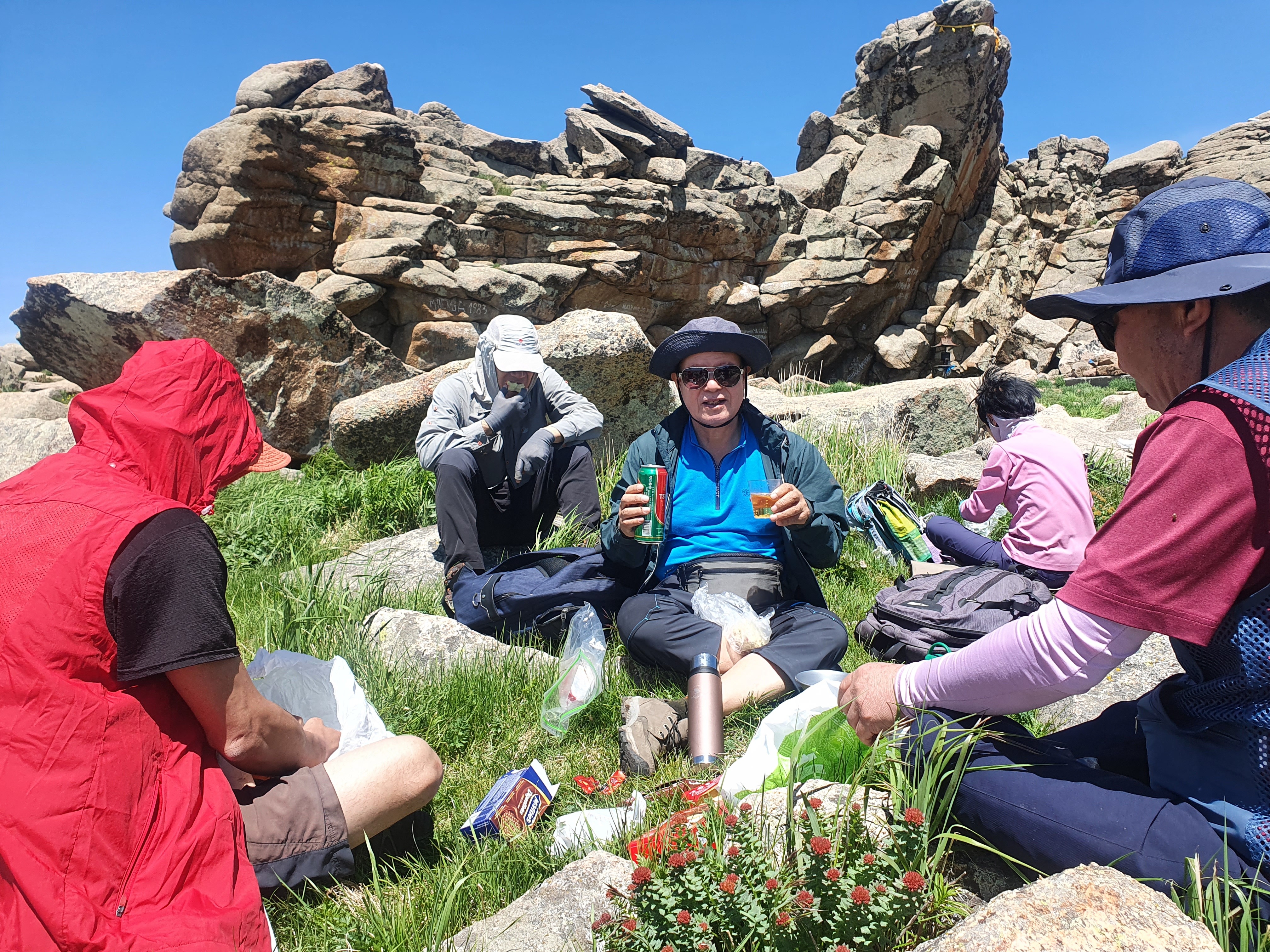 우리는 정상아래 초원에서 컵라면과 맥주를 마시며 50분 정도 휴식을 취하고 오후 1시 30분에 하산길에 올랐다. 하산은 원점 회귀로 2시간 정도 소요되었다. 휴식시간까지 총 5시간 정도 걸었다. 등산로 초입의 이정표에는 정상까지 8.5km로 표시되어 있는데 실제는 7km 정도 되는 것 같다는 것이 등산 메니아의 말이다.