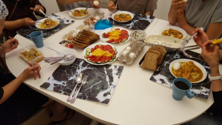 19명 조식쯤이야.. 렌지를 한구만 사용해야 해서