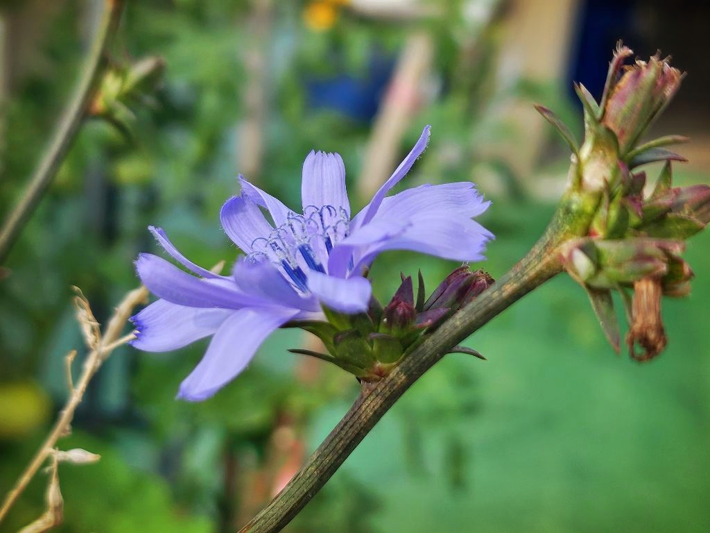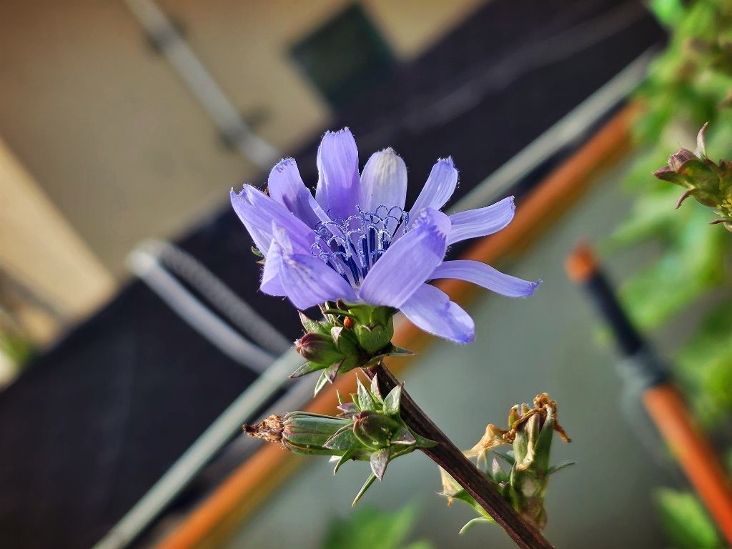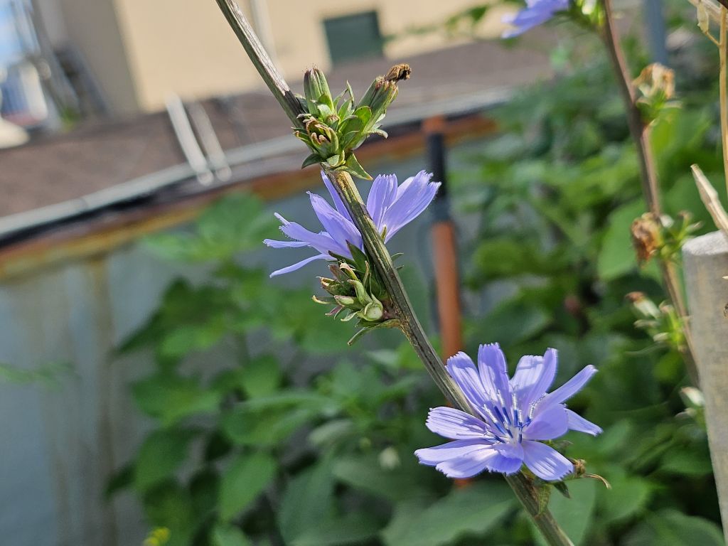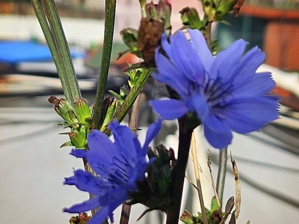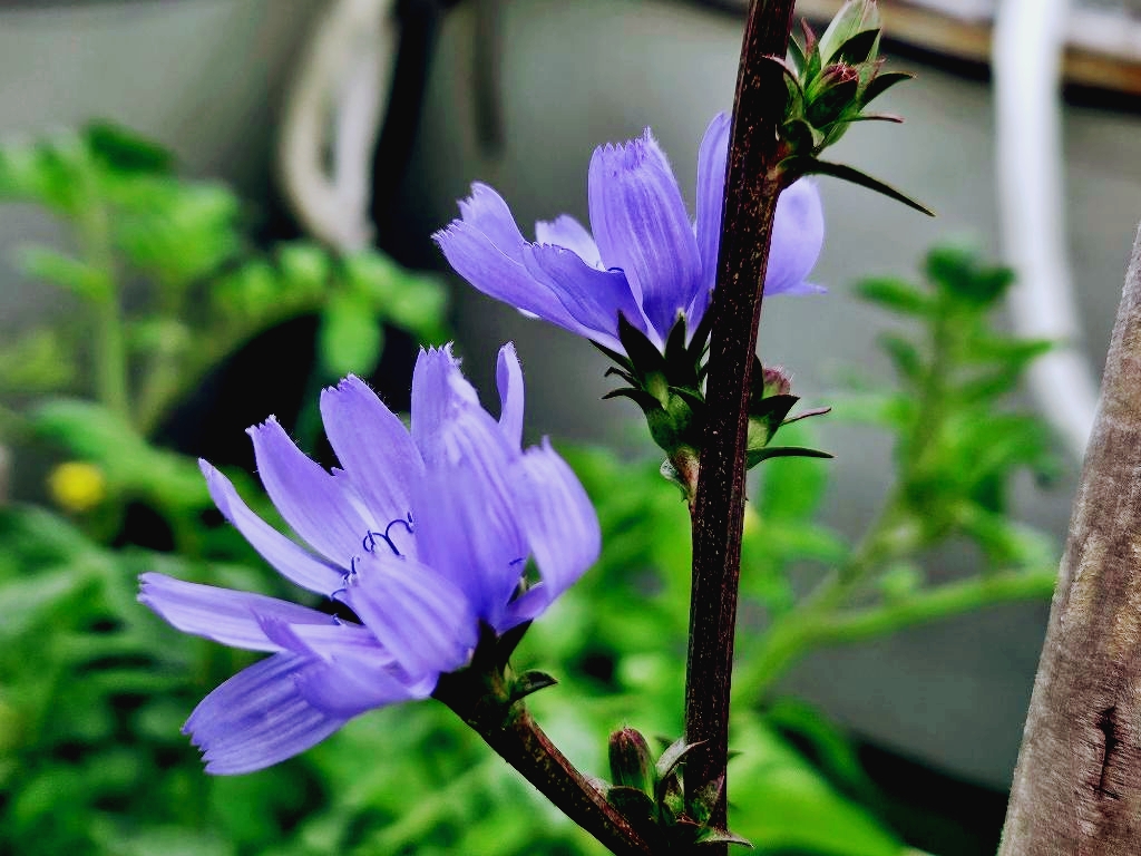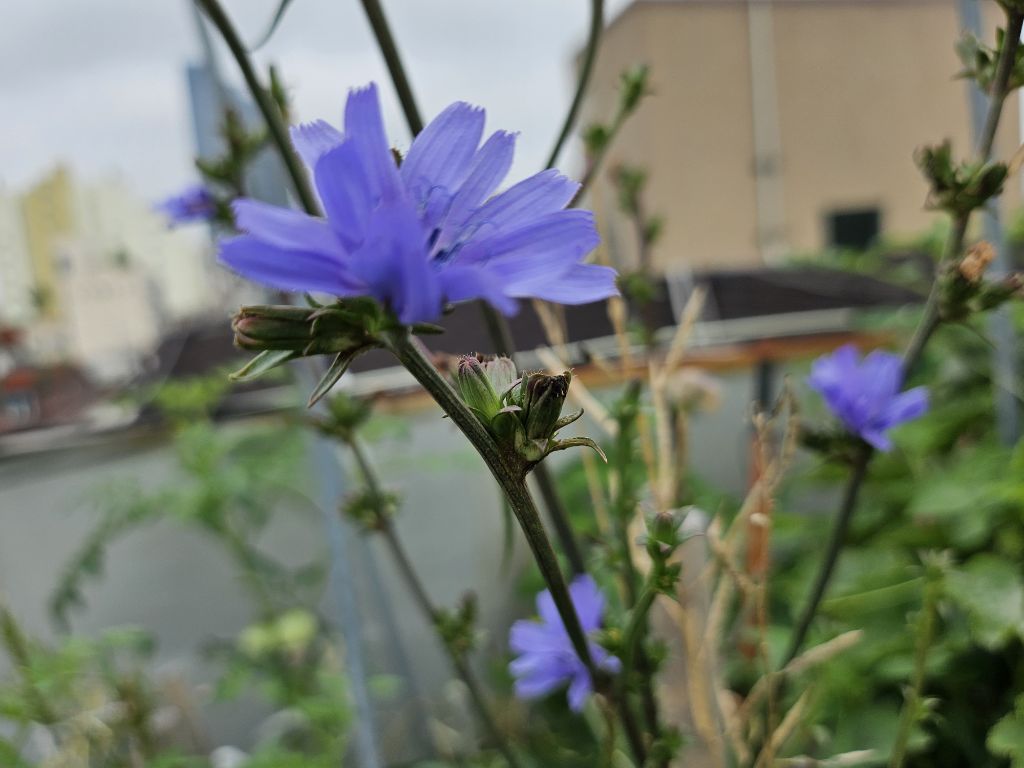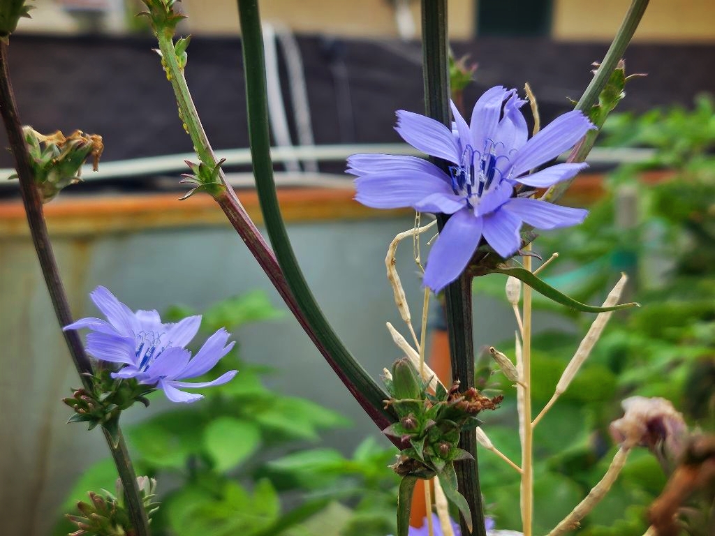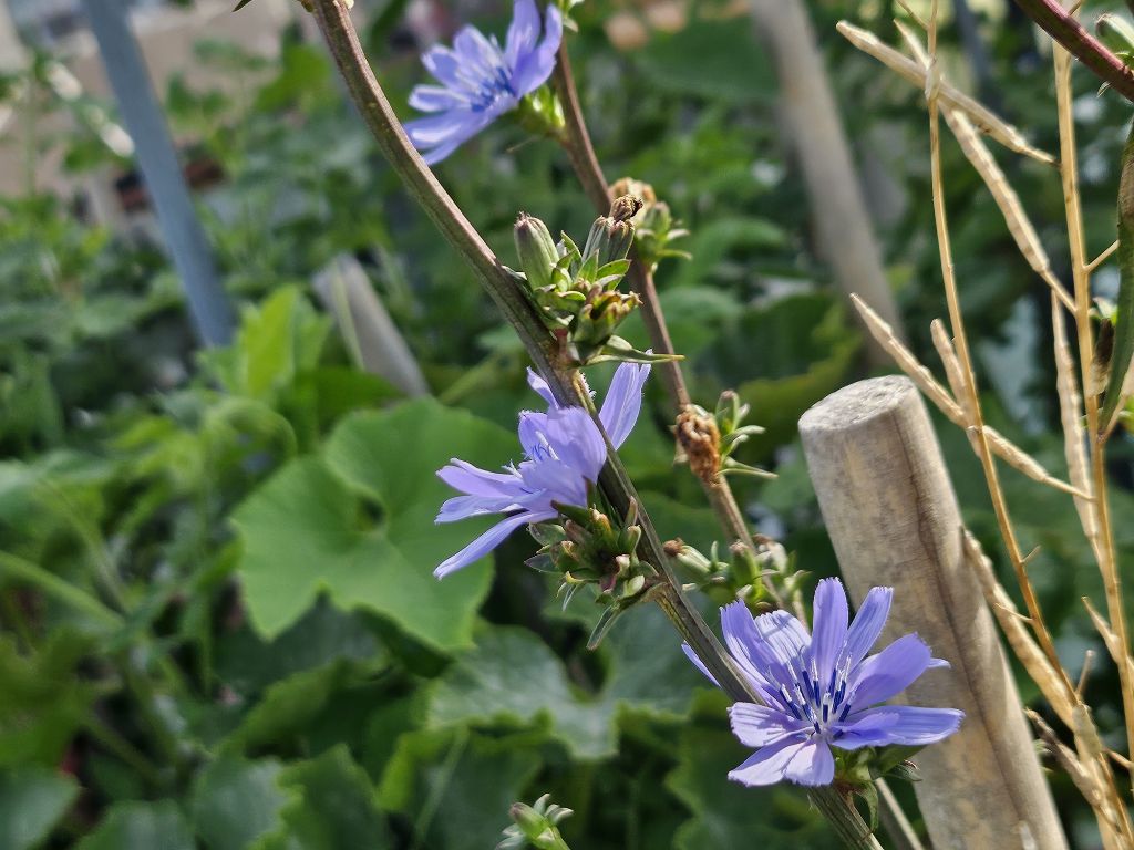 옥상 텃밭에 핀 치커리 꽃입니다.