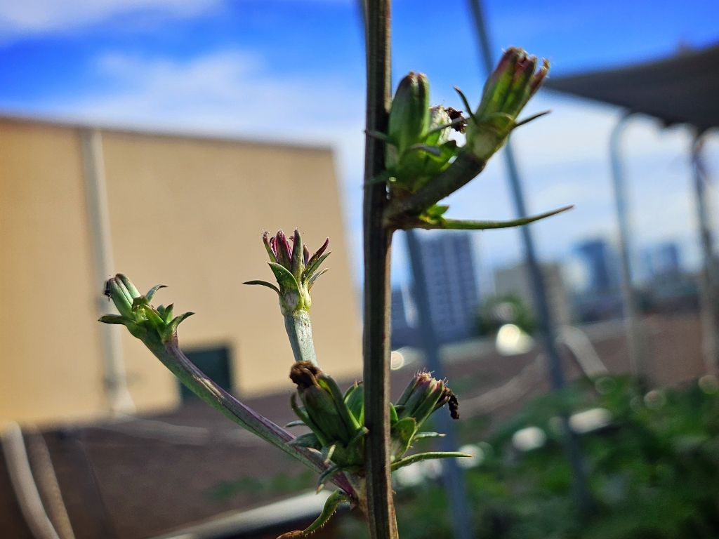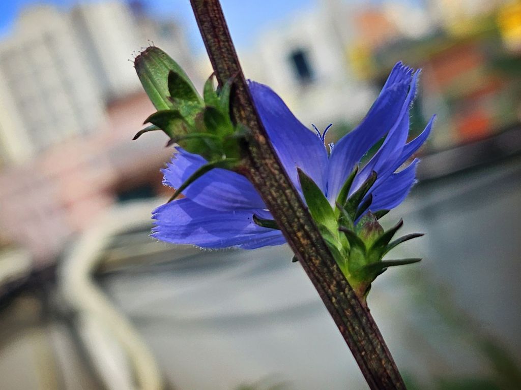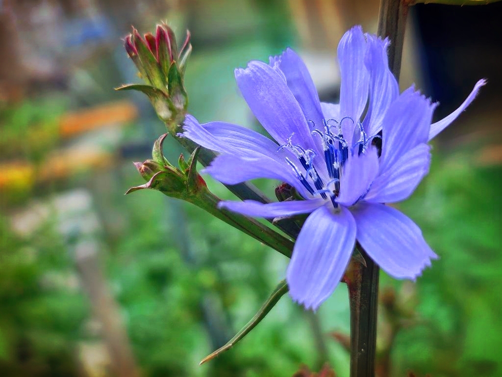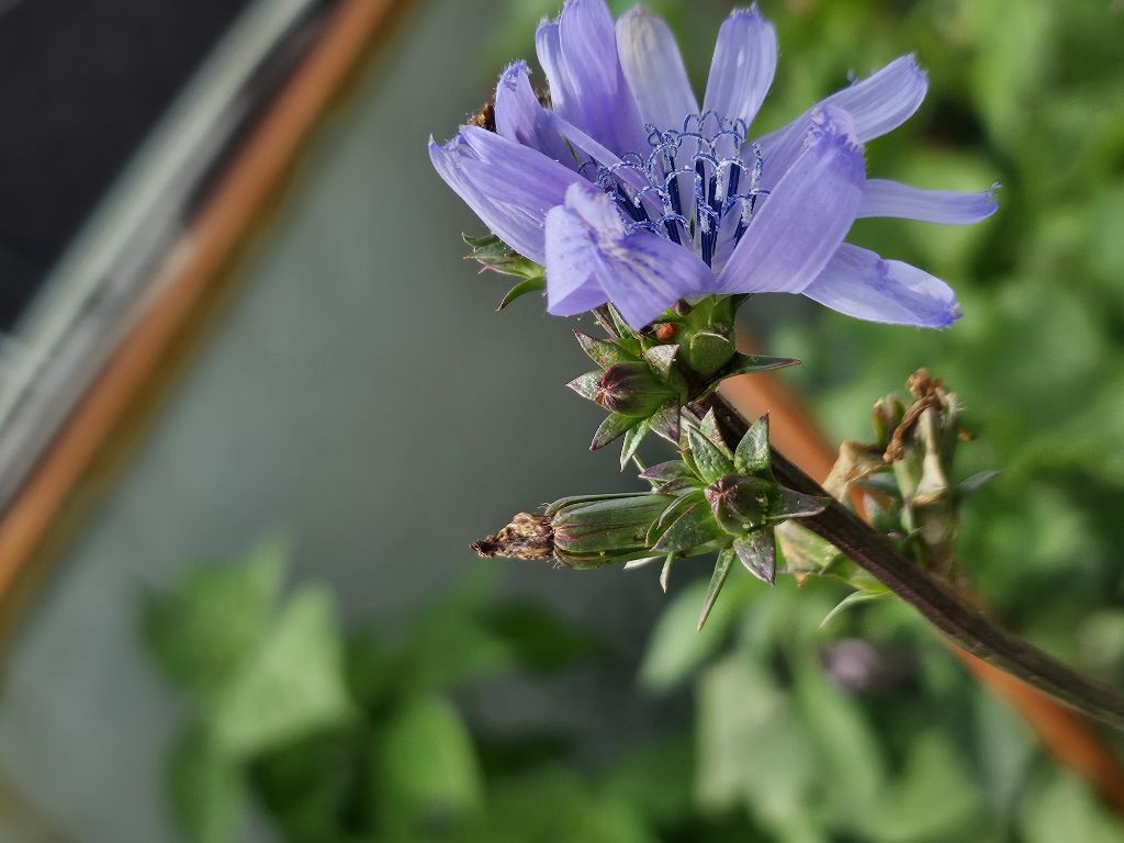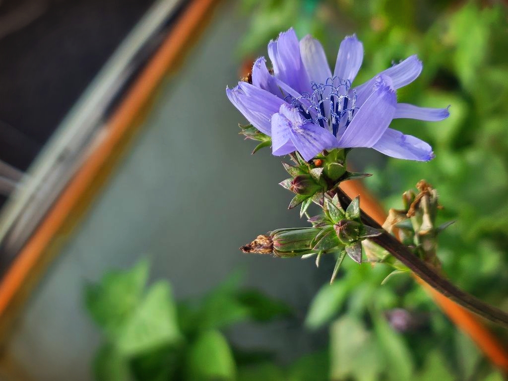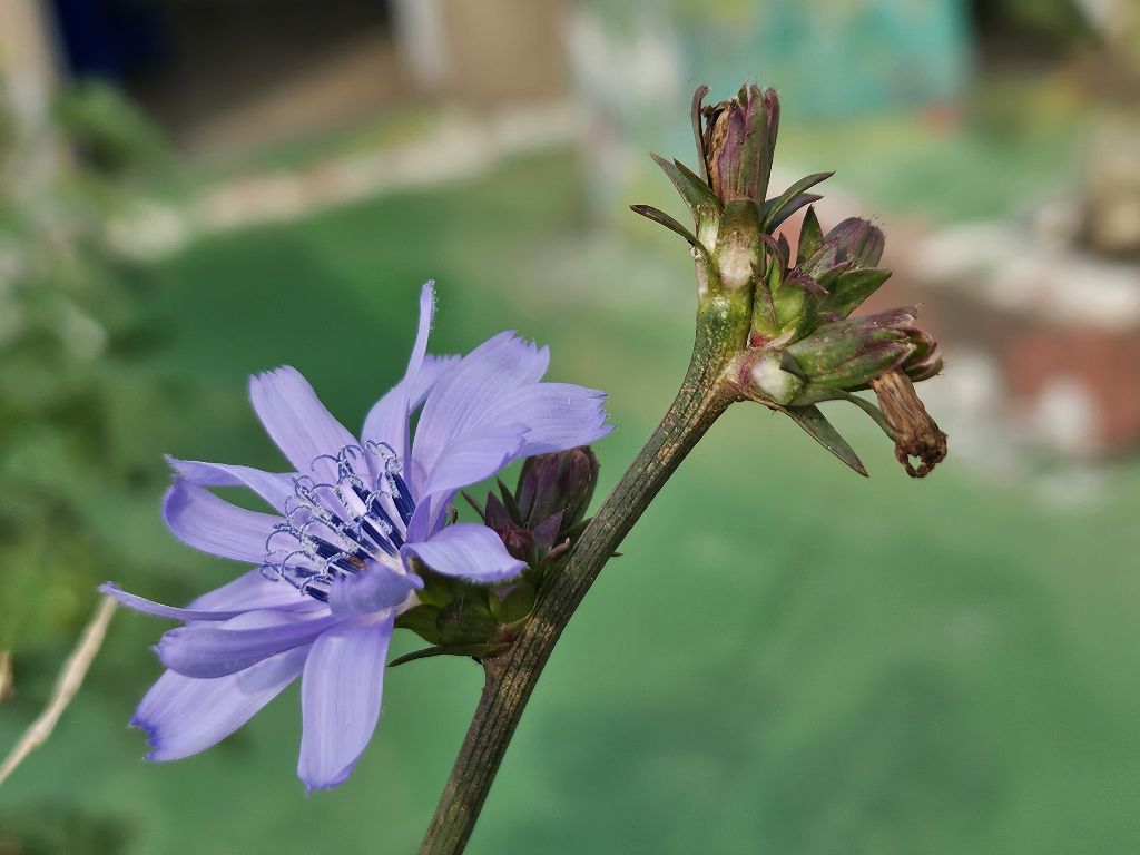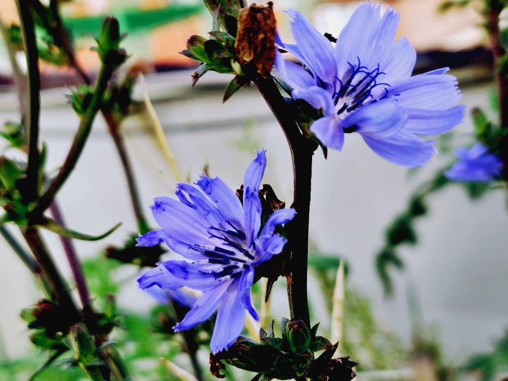 옥상 텃밭에 핀 치커리 꽃입니다.