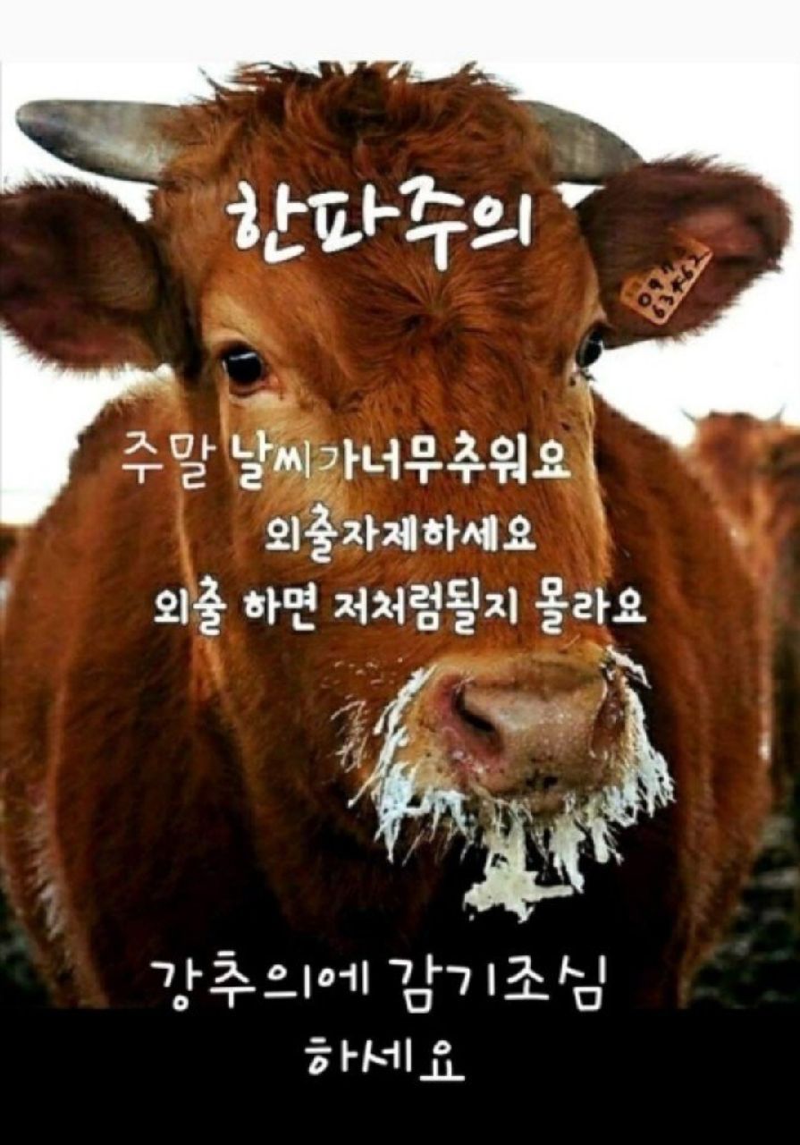 2018년 마지막 주말 작성자평창비트|작성시간18.12.29|조회수252 목록 댓글 2 글자크기 작게가 글자크기 크게가 오늘도 날씨가 엄청 춥네요길거리에 사람들은 뜨문뜨문 거릴고 있네요2018년 마지막 주말 한해의 끝자락에 와 있네요 젊은 시절은 시간이 길고 노년 기는 시간이 짧다고 할수 있지요이미 가버린 시간에 아쉬워하기 보다는다가오는 시간에 새로운 희망과 아름다운 시간을 만들어 가요한해를 마무리 하는 연말뜻깊은 시간 보내시고희망과 행복이 가득한한해 되세요 다음검색 현재 게시글 추가 기능 열기 북마크 신고 센터로 신고 댓글 댓글 2 댓글쓰기 답글쓰기 댓글 리스트 작성자자운영.. | 작성시간 18.12.29 에고~~평창비트님 계신곳은 더 추울텐데요ㅠ송아지 옷 좀 입히셔야 겠어요어릴때 이렇게 추운 날은소에게 끈이 달린 담요를덮어 주시던 아버지 생각 나네요추위 잘 견디시구요 답댓글 작성자평창비트 작성자 본인 여부 작성자 | 작성시간 18.12.29 네 맞아요 옛날에 소 덥석 이라고했던것 같아요 행복한 연휴 보내세요 댓글 전체보기