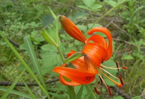꽃은 7∼8월에 피고 노란빛이 도는 붉은 색 바탕에 검은빛이 도는 자주색 점이 많으며