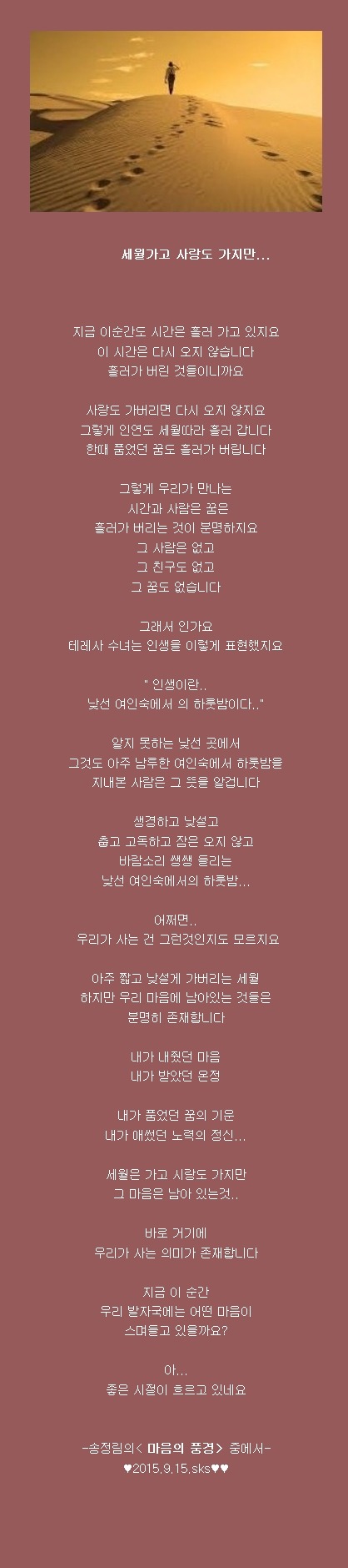 세월가고 사랑도 가지만.. 작성자청바위|작성시간15.09.15|조회수1,328 목록 댓글 3 글자크기 작게가 글자크기 크게가 다음검색 현재 게시글 추가 기능 열기 북마크 공유하기 신고 센터로 신고 댓글 댓글 3 댓글쓰기 답글쓰기 댓글 리스트 작성자시내마을 | 작성시간 15.09.15 지나간 세월 아쉬워 하기보담 꿈을 먹으며 사는 인생도~~ 하긴 것도 덧없는 것인데요 작성자강호동 | 작성시간 15.09.15 감사합니다 작성자한결같이요 | 작성시간 15.09.15 고맙습니다 댓글 전체보기