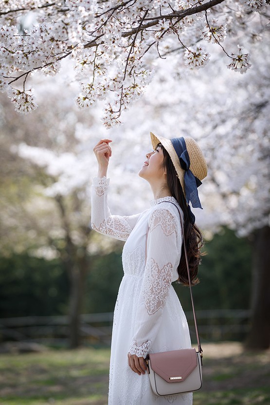 어딘가 꽃동산에 올라 흩날리는 봄꽃 속에