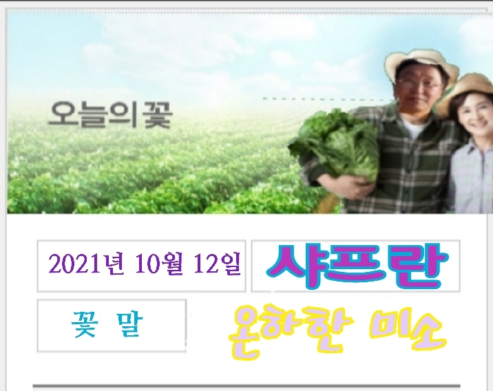 ༄✿༄내 용 : 사프란은 알뿌리 식물인 크로커스 종류다. 봄에 피는 것과 가을에 피는 것이 있는데, 가을에 피는 것을 사프란이라 부른다. 흰색, 자주색 등 몇 가지 품종이 있다. 꽃 모양이 꽃말처럼 매우 아름답다.