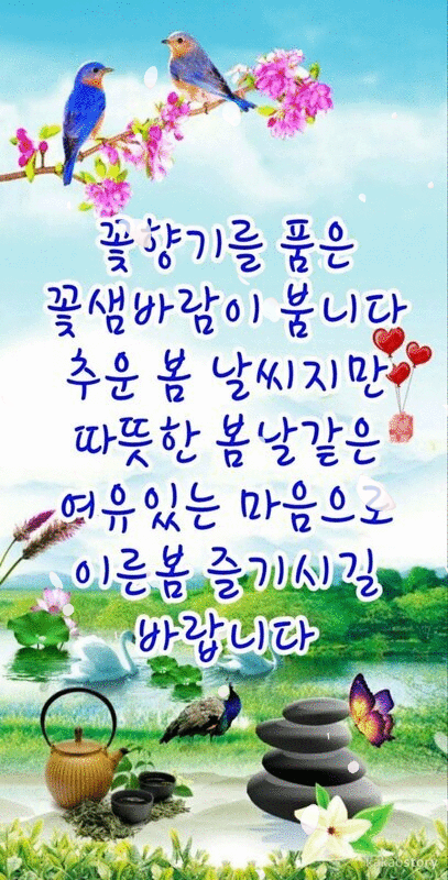 찾아온 노란 산수유 꽃 또한 반가워라 느릿느릿 걸어도